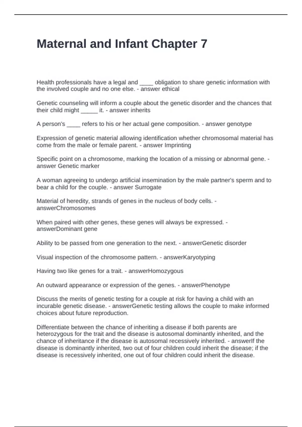 Maternal and Infant Chapter 7 Questions and Answers 100% Correct