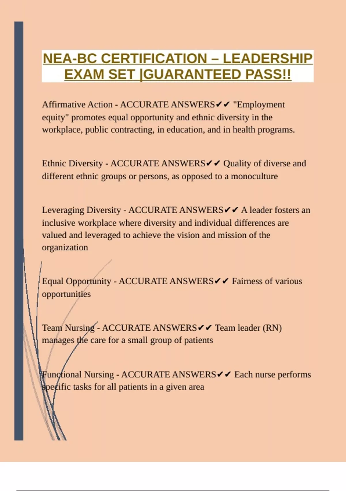 NEA-BC CERTIFICATION – LEADERSHIP EXAM SET |GUARANTEED PASS!!