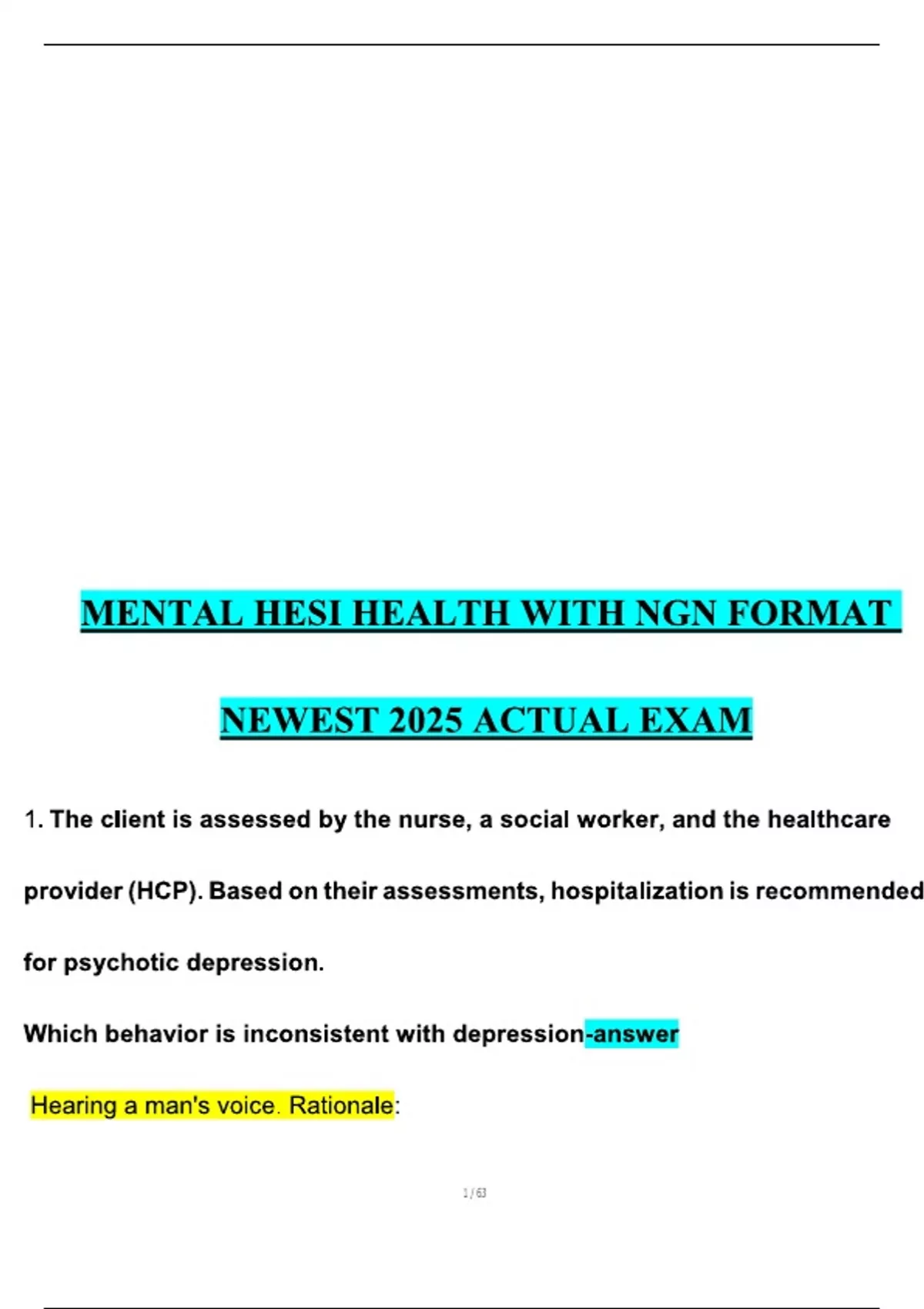 MENTAL HESI HEALTH WITH NGN FORMAT NEWEST 2025 ACTUAL EXAM ALL QUESTIONS AND CORRECT DETAILED ANSWERS (VERIFIED ANSWERS) |ALREADY GRADED A+||NEWEST VERSIONS