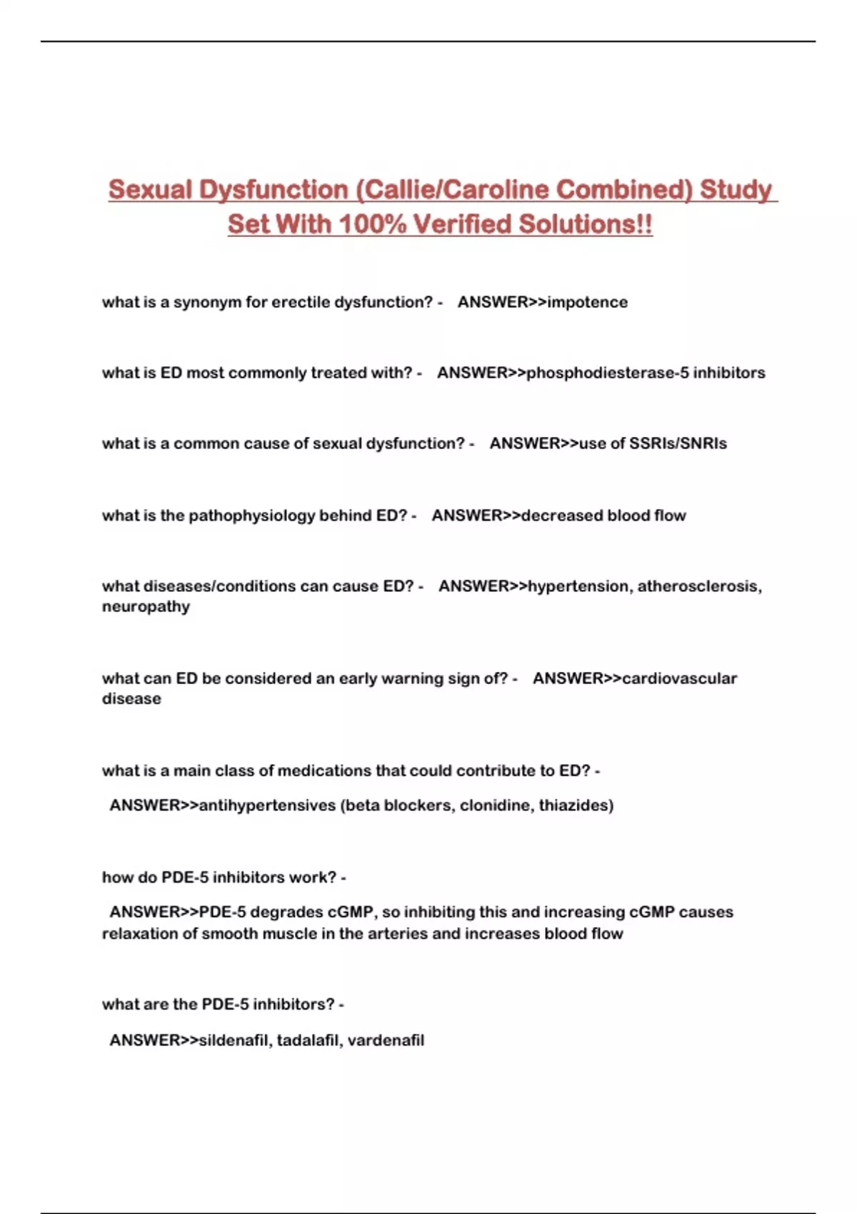 Sexual Dysfunction (Callie/Caroline Combined) Study Set With 100% Verified Solutions!!...