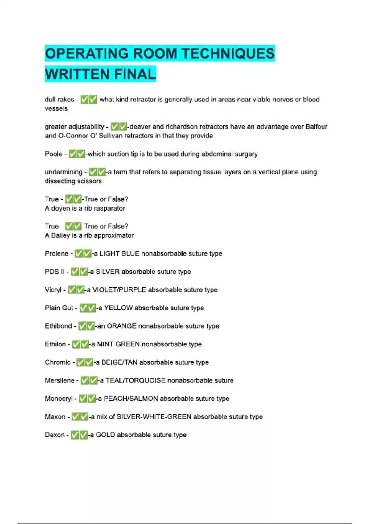 OPERATING ROOM TECHNIQUES WRITTEN FINAL