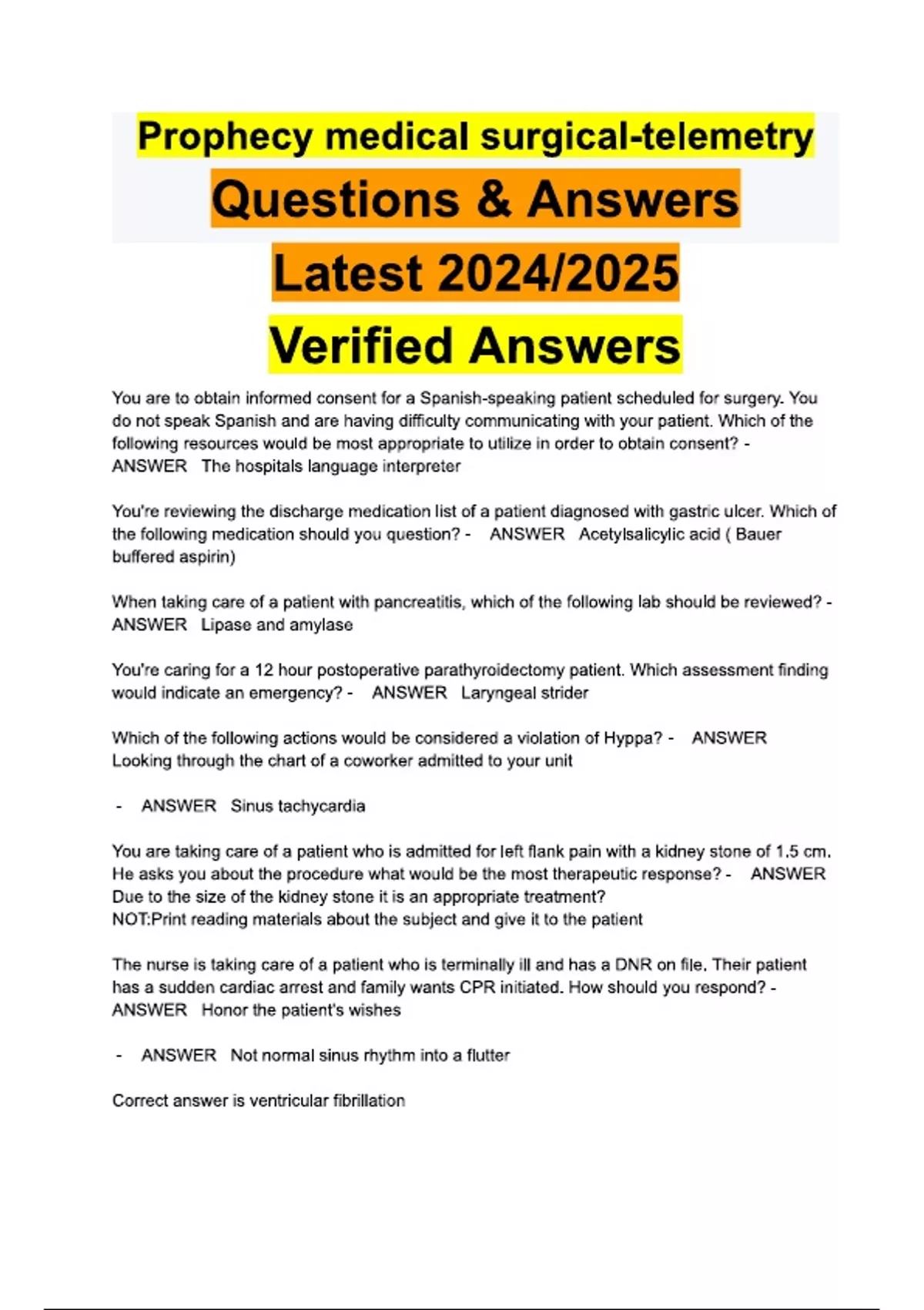 Prophecy medical surgical-telemetry Questions & Answers Latest Verified Answers.