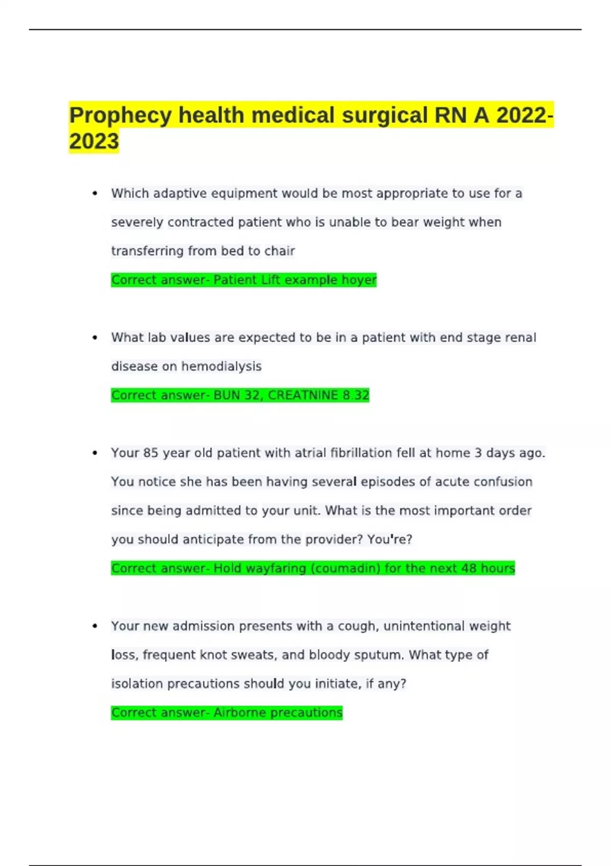 Prophecy health medical surgical RN A (Latest ) Verified Solutions