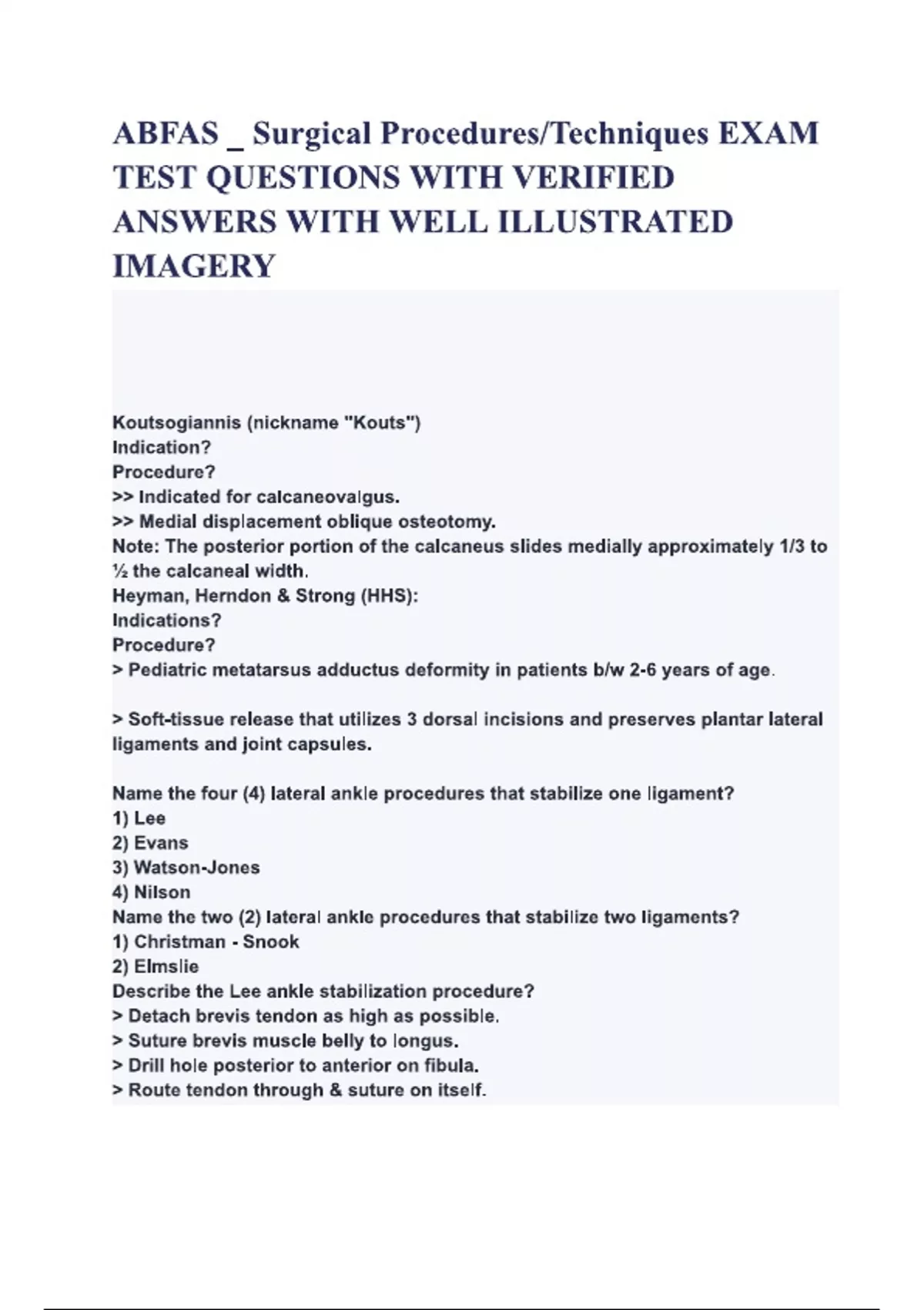 ABFAS Surgical Procedures-Techniques (Latest 2025 Update), Questions and answers with Verified solution, Rated A+.