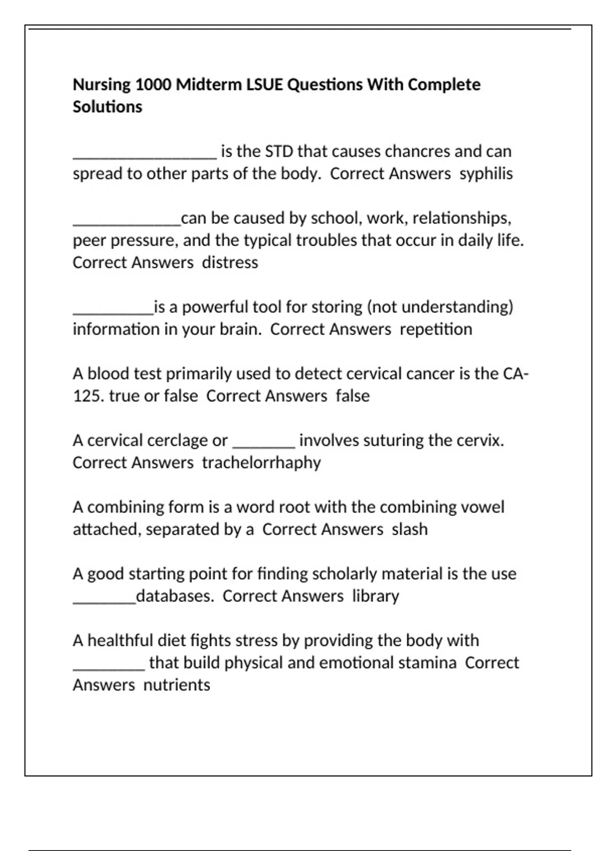 Nursing 1000 Midterm LSUE Questions With Complete Solutions