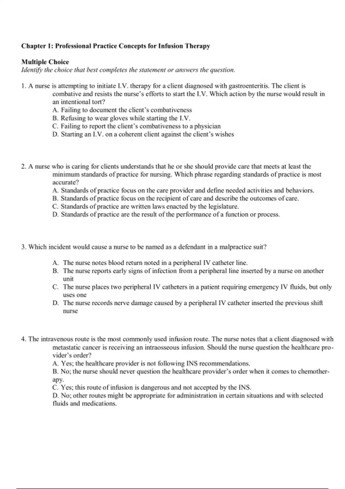 Test Bank for Phillips's Manual of IV Therapeutics: Evidence-Based Practice for Infusion Therapy, 7th Edition