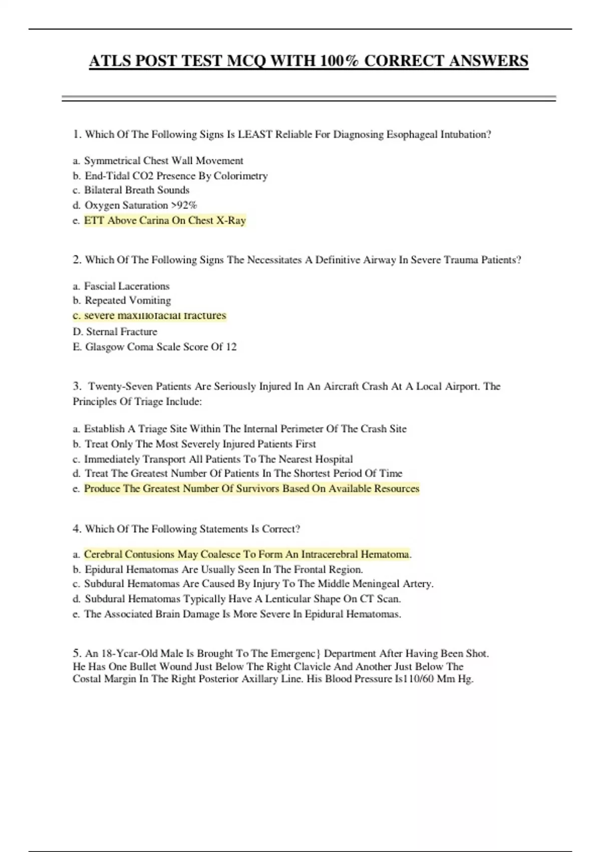 ATLS POST TEST MCQ WITH 100% CORRECT ANSWERS