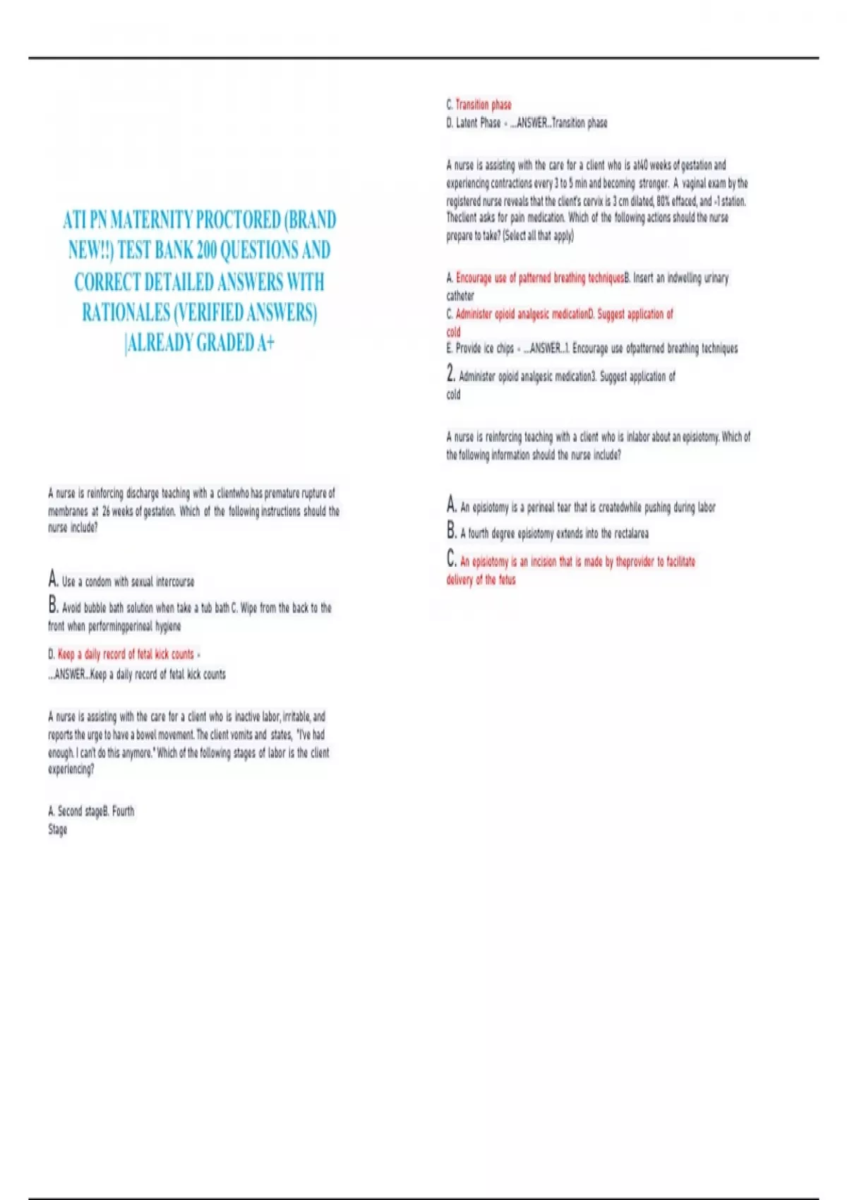 ATI PN MATERNITY PROCTORED (BRAND NEW!!) TEST BANK 200 QUESTIONS AND CORRECT DETAILED ANSWERS WITH RATIONALES (VERIFIED ANSWERS) |ALREADY GRADED A+ ATI PN MATERNITY PROCTORED (BRAND NEW!!) TEST BANK 200 QUESTIONS AND CORRECT DETAILED ANSWERS WITH RATIONALES (VERIFIED ANSWERS) |ALREADY GRADED A+ ATI PN MATERNITY PROCTORED (BRAND NEW!!) TEST BANK 200 QUESTIONS AND CORRECT DETAILED ANSWERS WITH RATIONALES (VERIFIED ANSWERS) |ALREADY GRADED A+