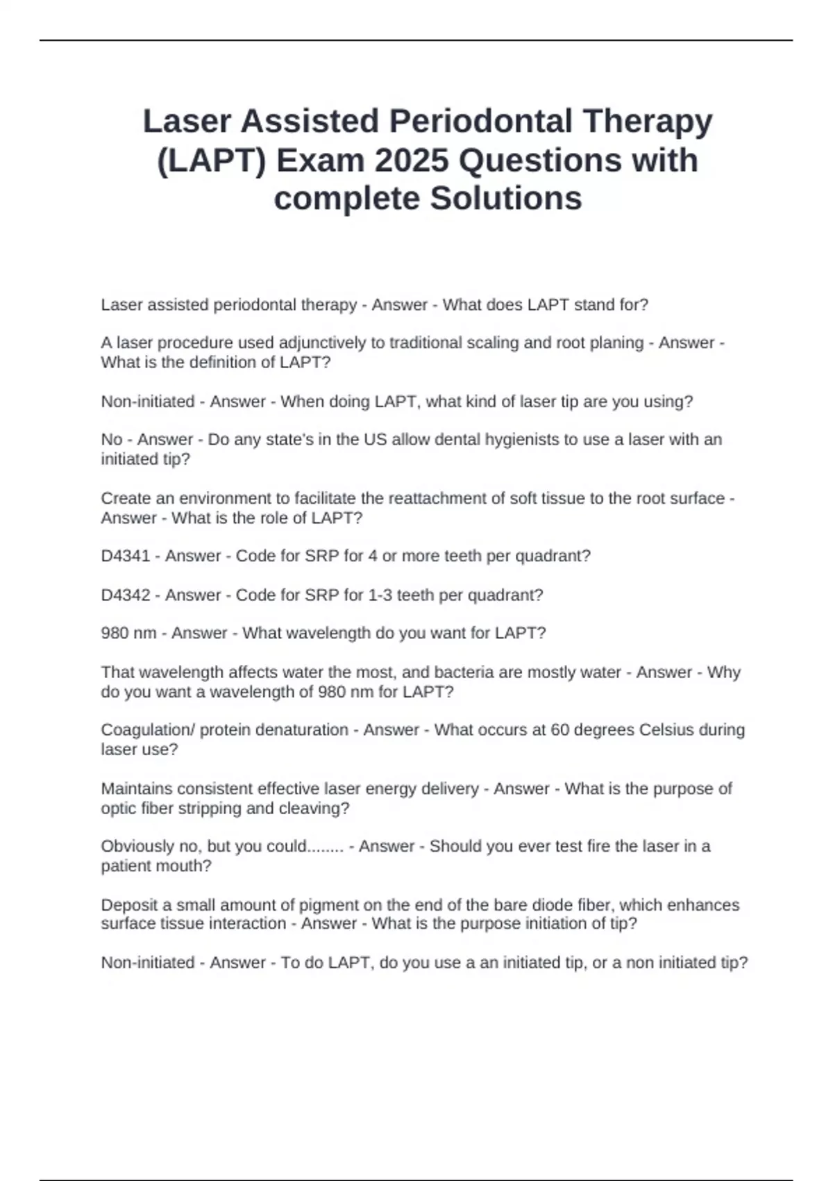 Laser assisted periodontal therapy - Answer - What does LAPT stand for?