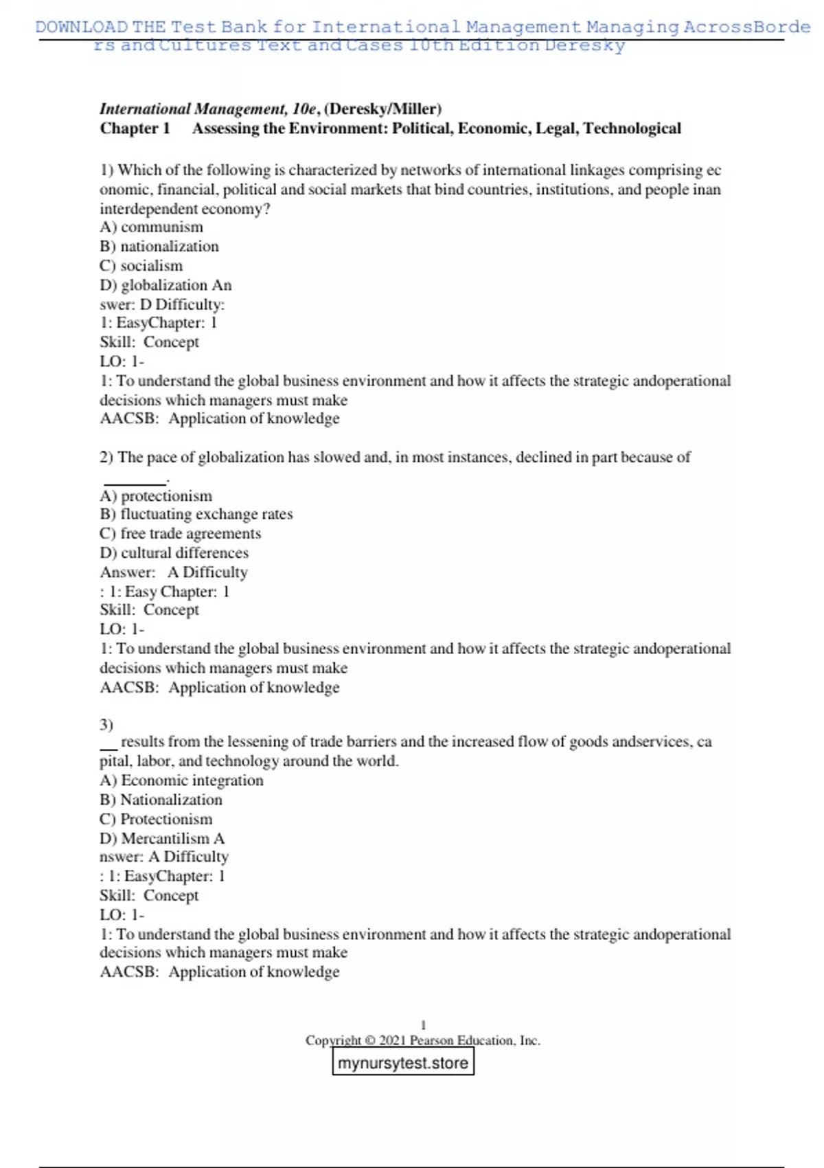 Test bank for international management managing across borders and cultures text and cases 10th edition deresky