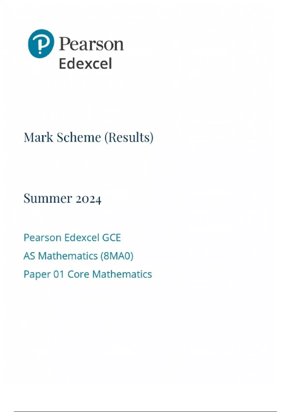 GCE EDEXCEL 2024 CORE AS MATHEMATICS PAPER 1 MARK SCHEME