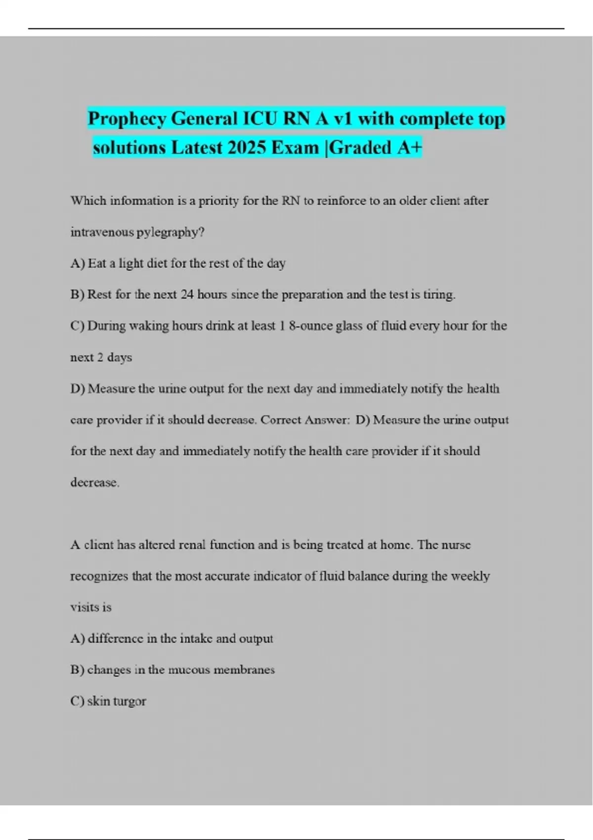 Prophecy General ICU RN A v1 with complete top solutions Latest 2025 Exam |Graded A+