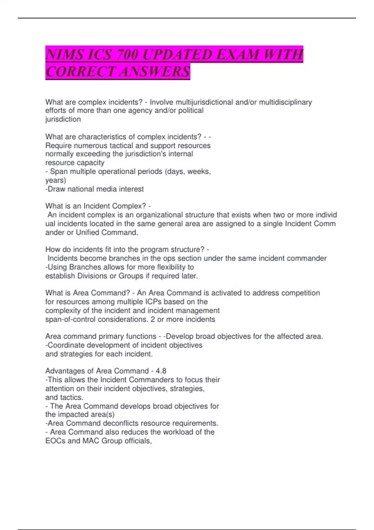 NIMS ICS 700 UPDATED EXAM WITH CORRECT ANSWER