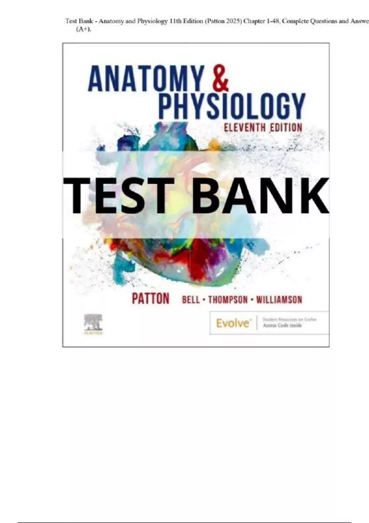 Test Bank - Anatomy and Physiology 11th Edition (Patton 2025) Chapter 1-48, Complete Questions and Answers (A+).