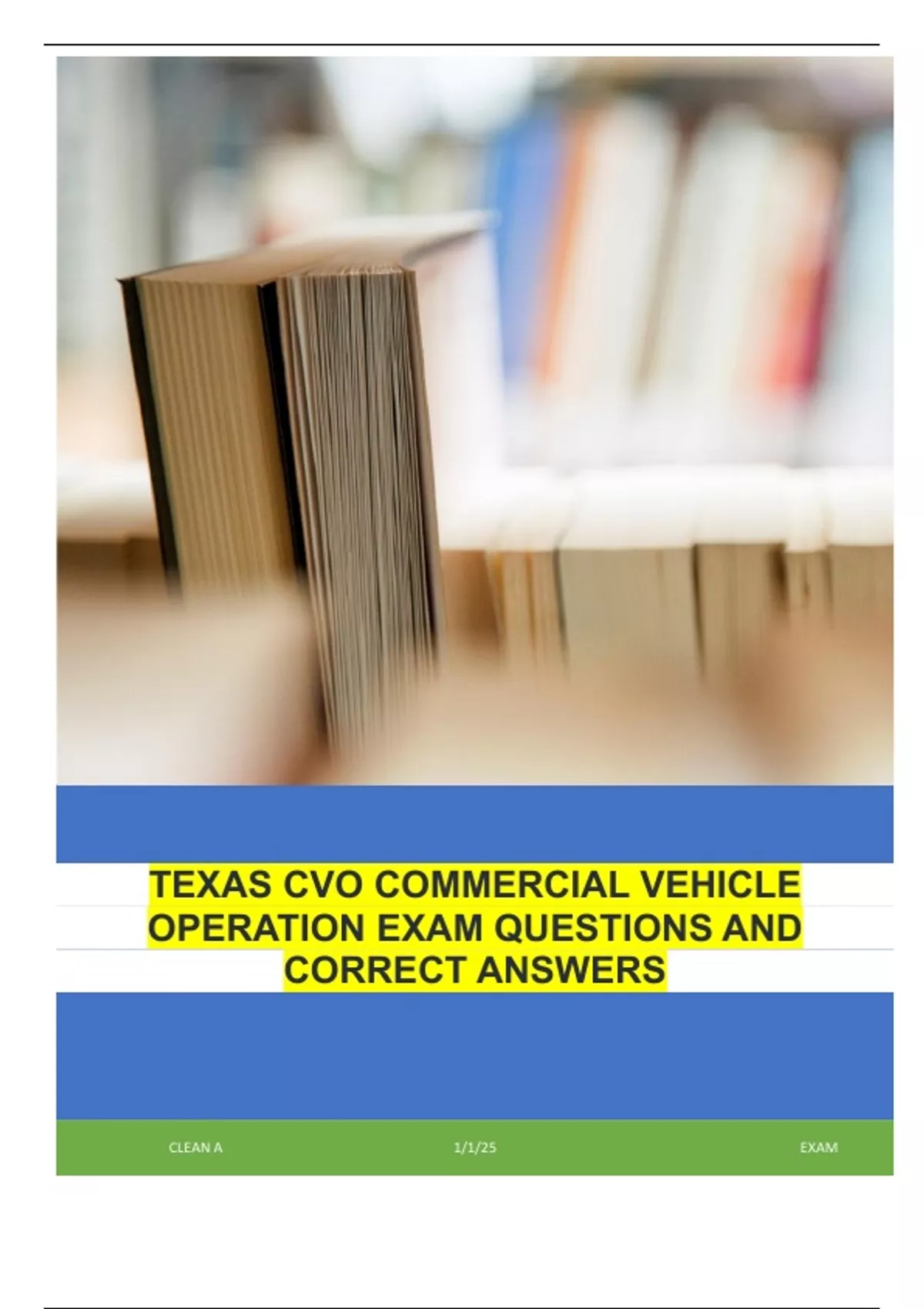 TEXAS CVO COMMERCIAL VEHICLE OPERATION EXAM QUESTIONS AND CORRECT ANSWERS