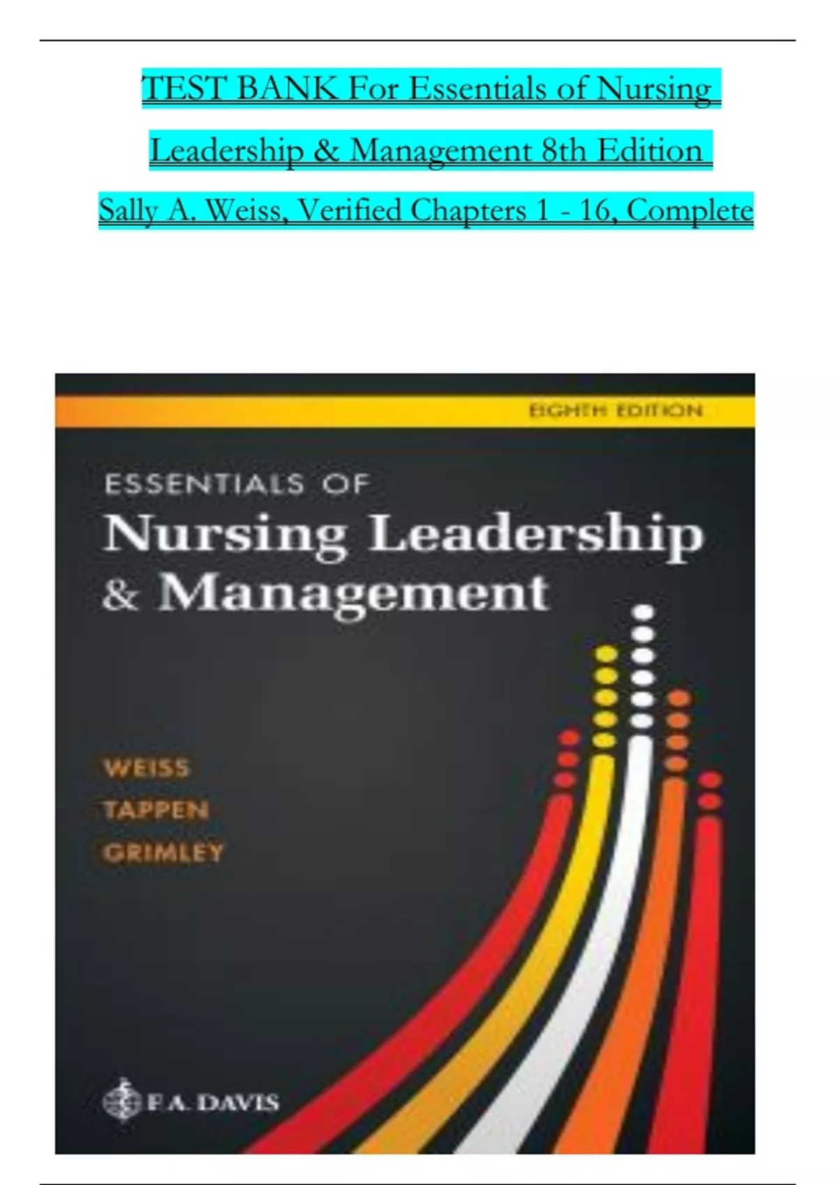 Weiss, Essentials of Nursing Leadership and Management, 8e Page 1 of 12