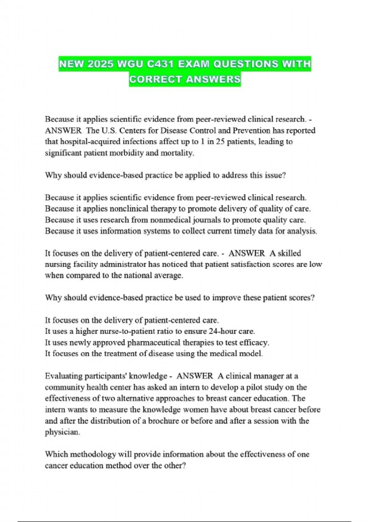 NEW 2025 WGU C431 EXAM QUESTIONS WITH CORRECT ANSWERS...