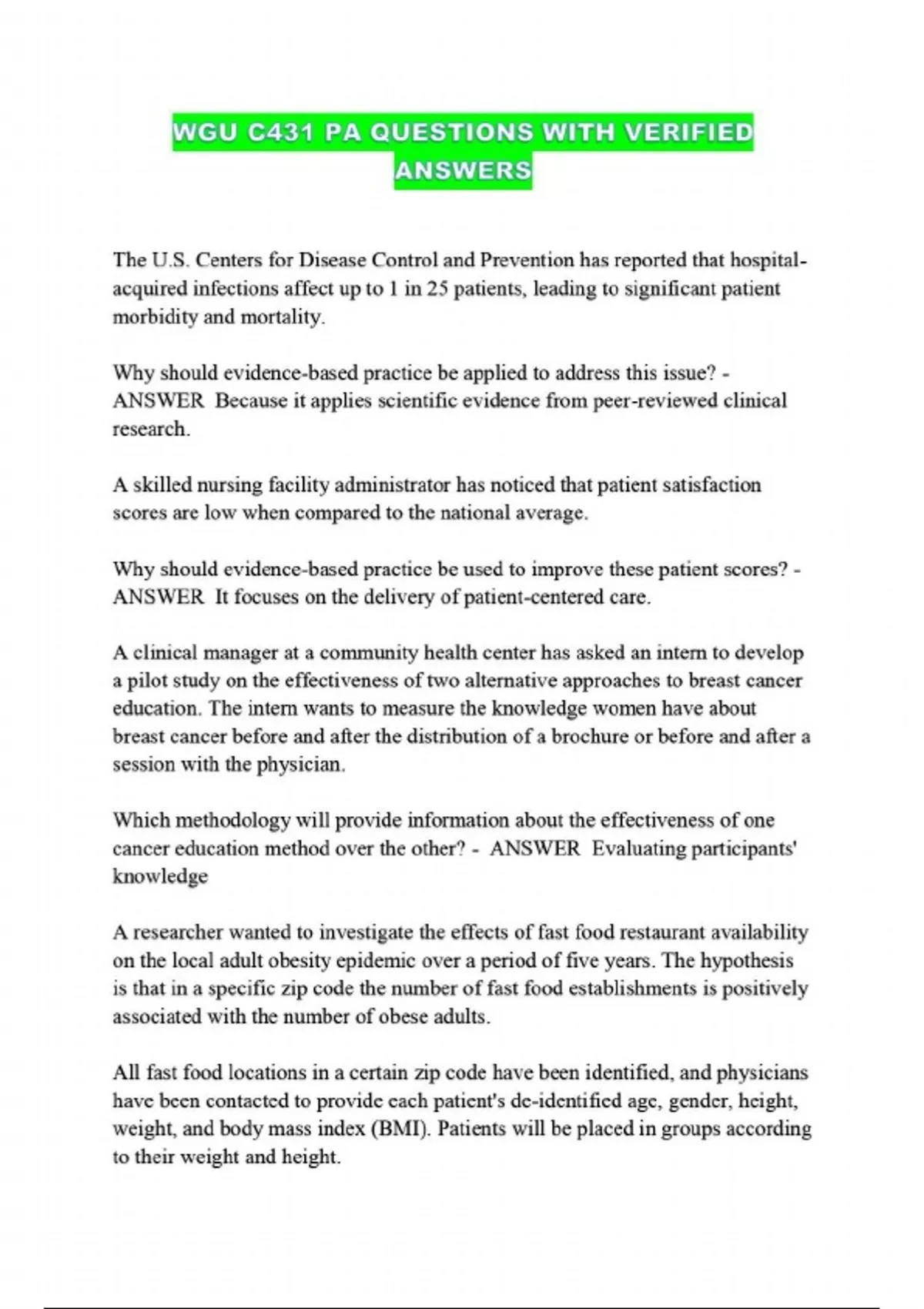 WGU C431 PA QUESTIONS WITH VERIFIED ANSWERS