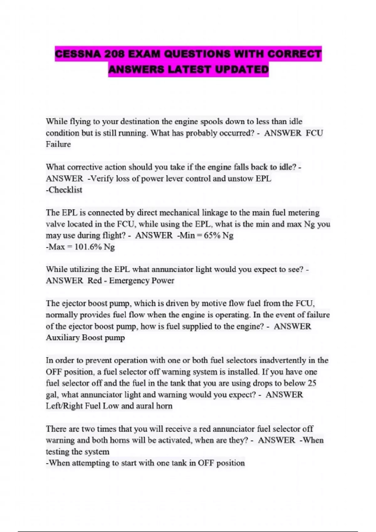 CESSNA 208 EXAM QUESTIONS WITH CORRECT ANSWERS LATEST UPDATED