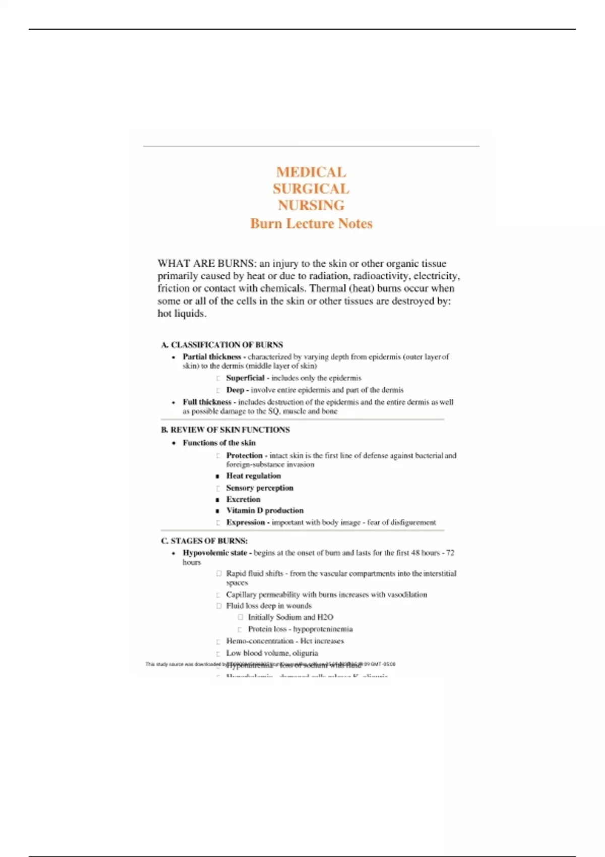 This is a comprehensive and detailed note on burns for Nurs 101. An essential Study Resource just for YOU!!