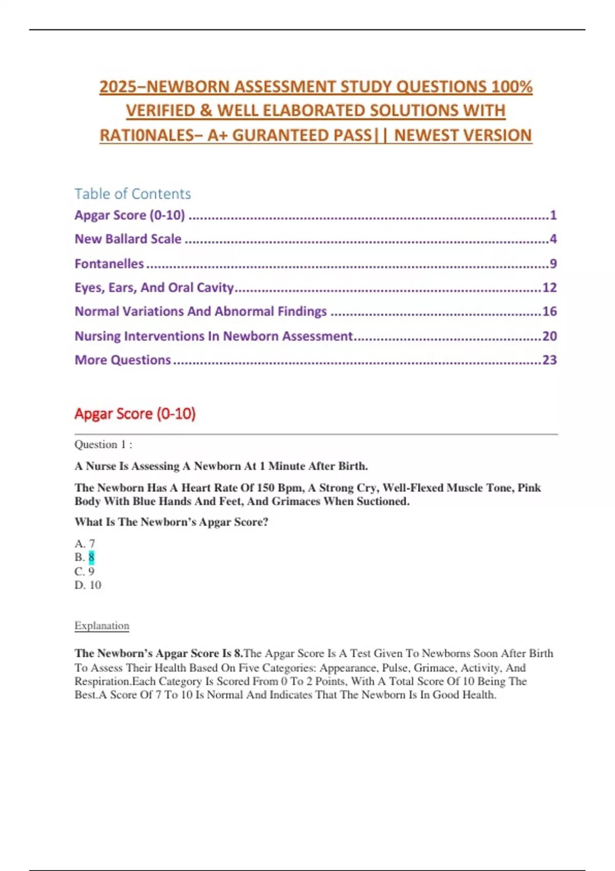 2025−NEWBORN ASSESSMENT STUDY QUESTIONS 100%