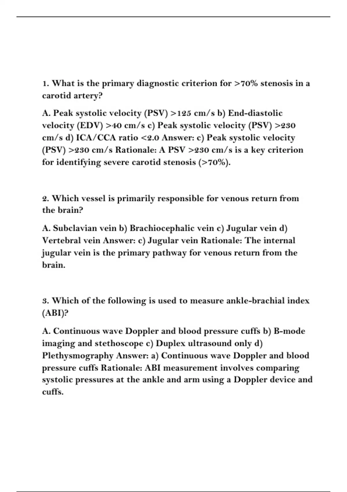 cm/s d) ICA/CCA ratio <2.0 Answer: c) Peak systolic velocity