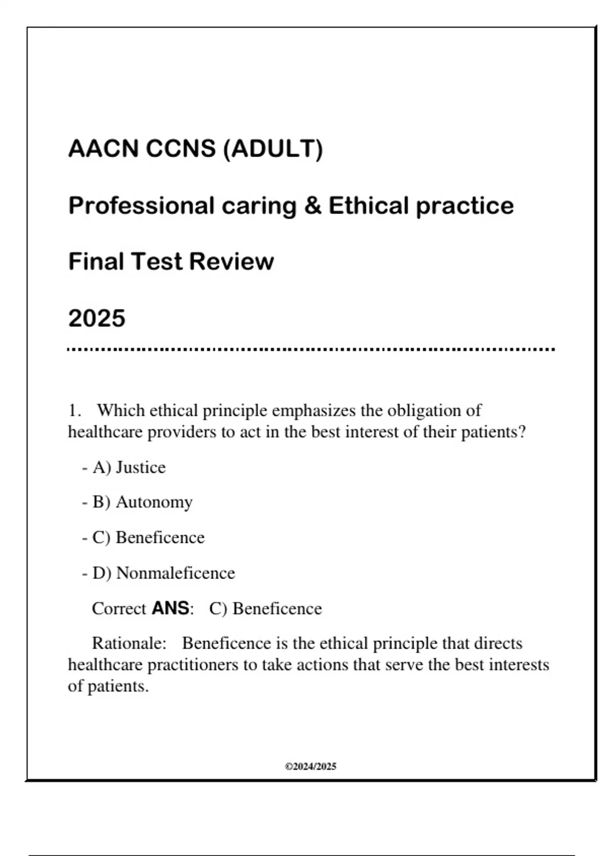 AACN CCNS (ADULT) PROFESSIONAL CARING & ETHICAL PRACTICE FINAL TEST REVIEW 2025AACN CCNS (ADULT) PROFESSIONAL CARING & ETHICAL PRACTICE FINAL TEST REVIEW 2025