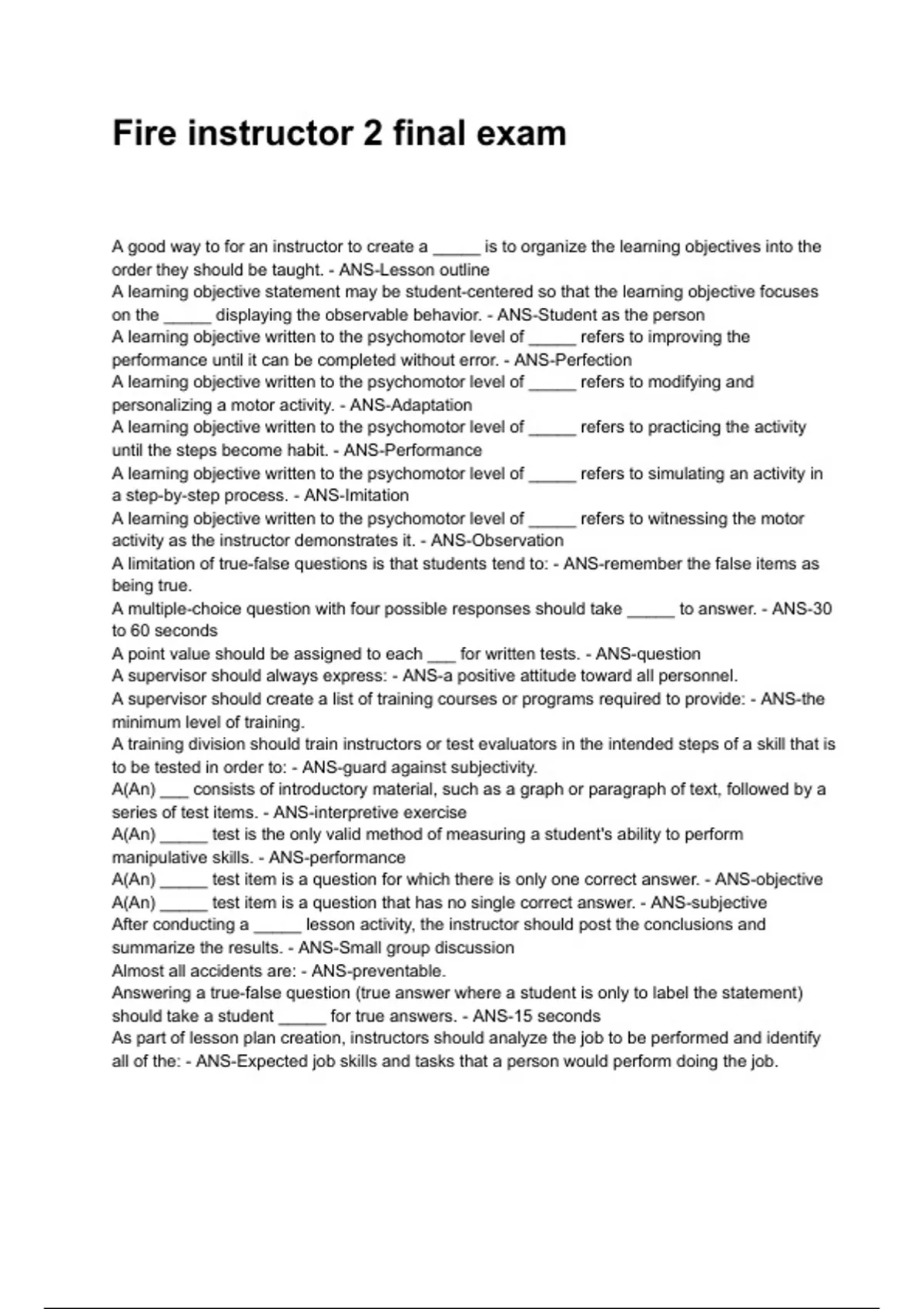 Fire instructor 2 final exam