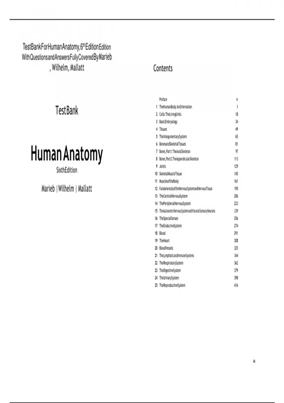 , Test Bank For Human Anatomy, 6th Edition Edition