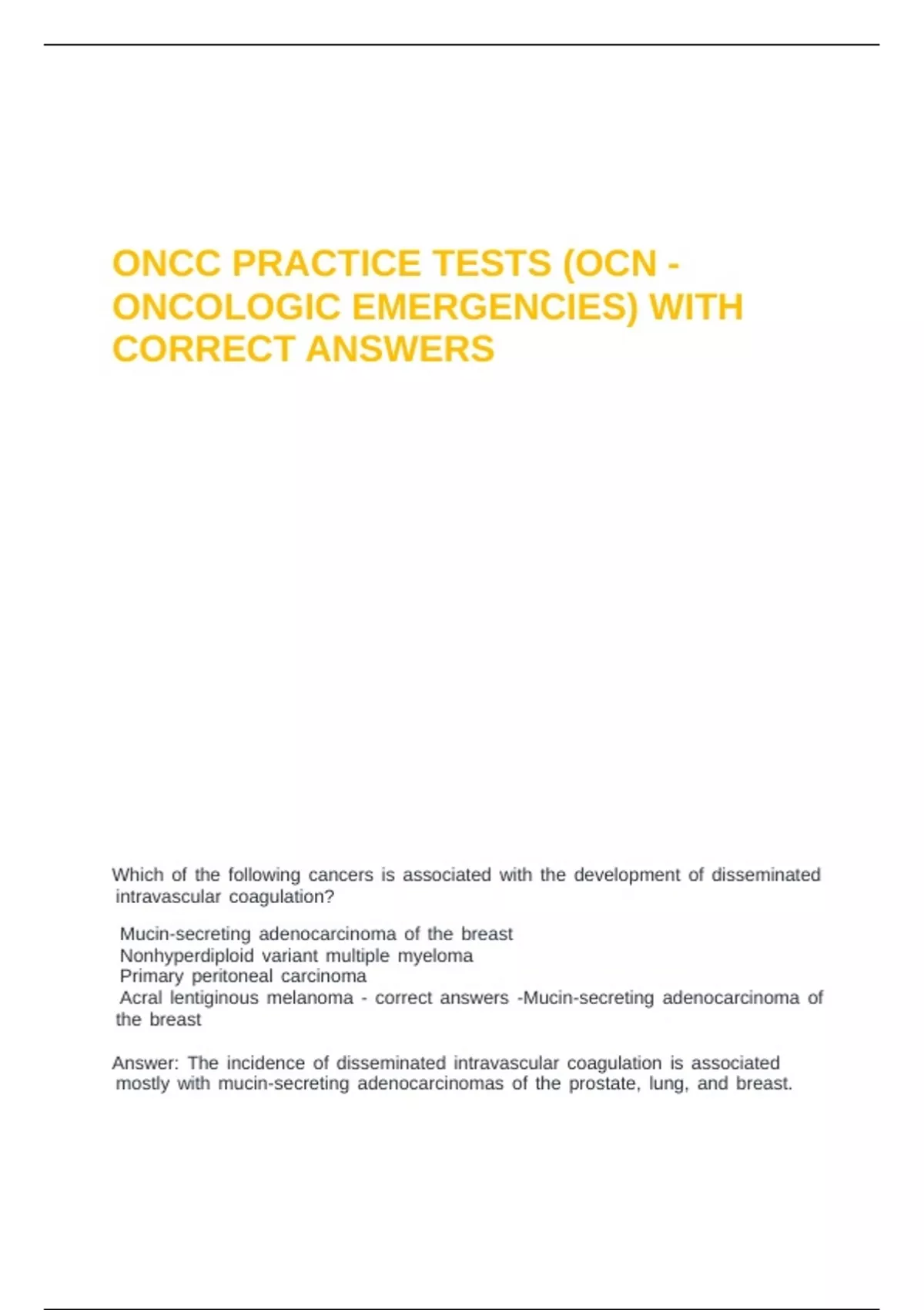 ONCC Practice Tests (OCN - Oncologic Emergencies)