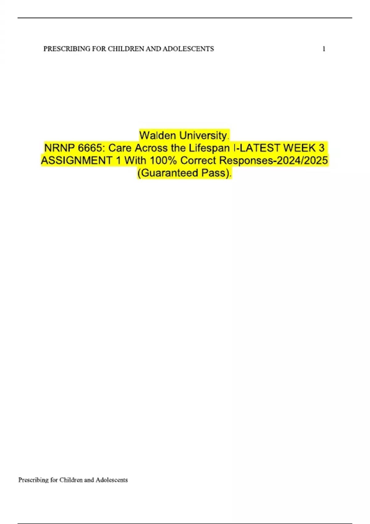 Walden University. NRNP 6665: Care Across the Lifespan I-LATEST WEEK 3 ASSIGNMENT 1 With 100% Correct Responses-2024/2025 (Guaranteed Pass).
