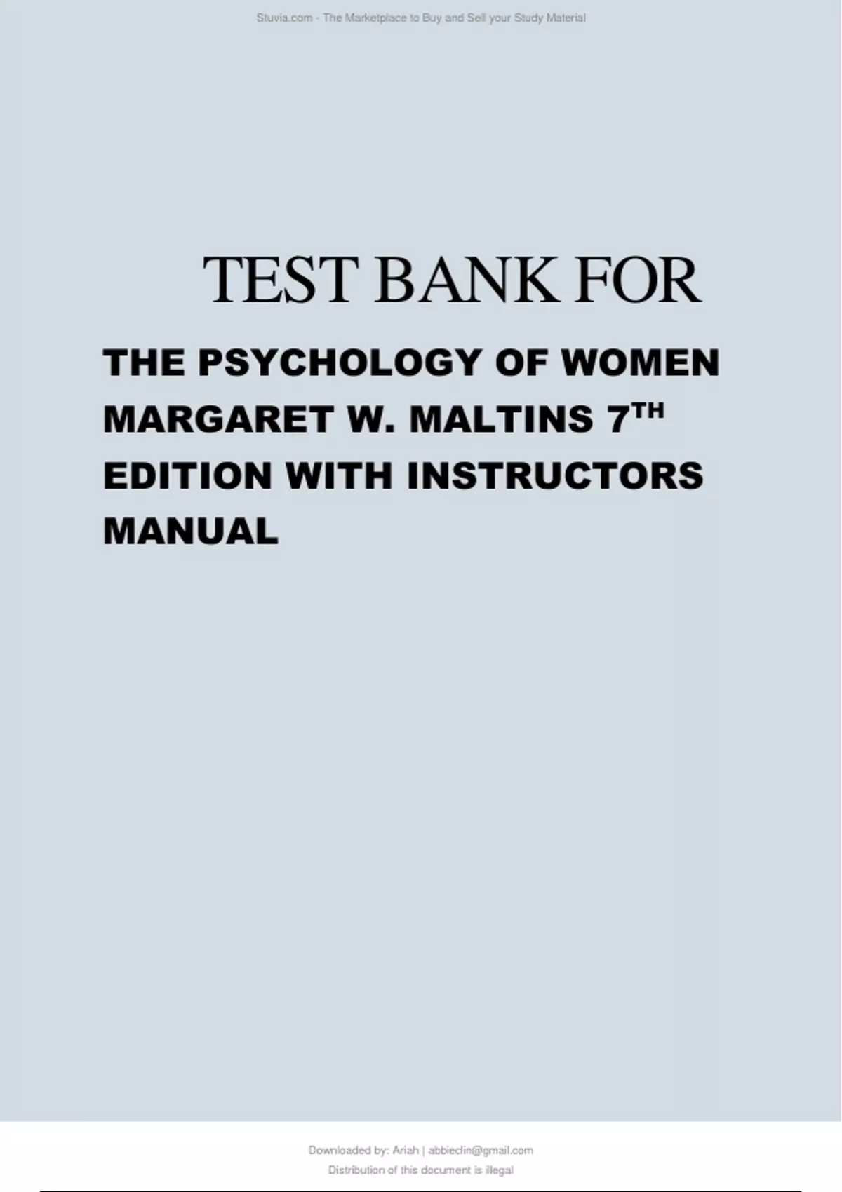 Instructor’s Manual with Test Bank for Margaret W. Matlin’s Psychology of Women, 7e (2012)