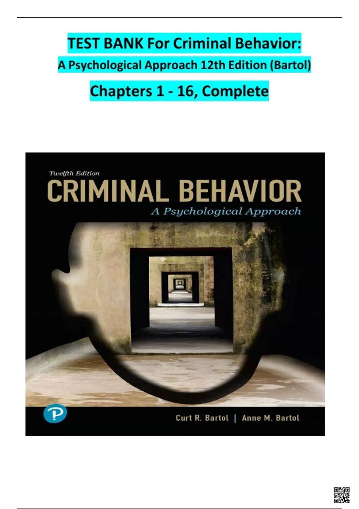 TEST BANK for Criminal Behavior A Psychological Approach 12th Edition by Bartol All-Chapters 1 to 16 | Complete Guide.