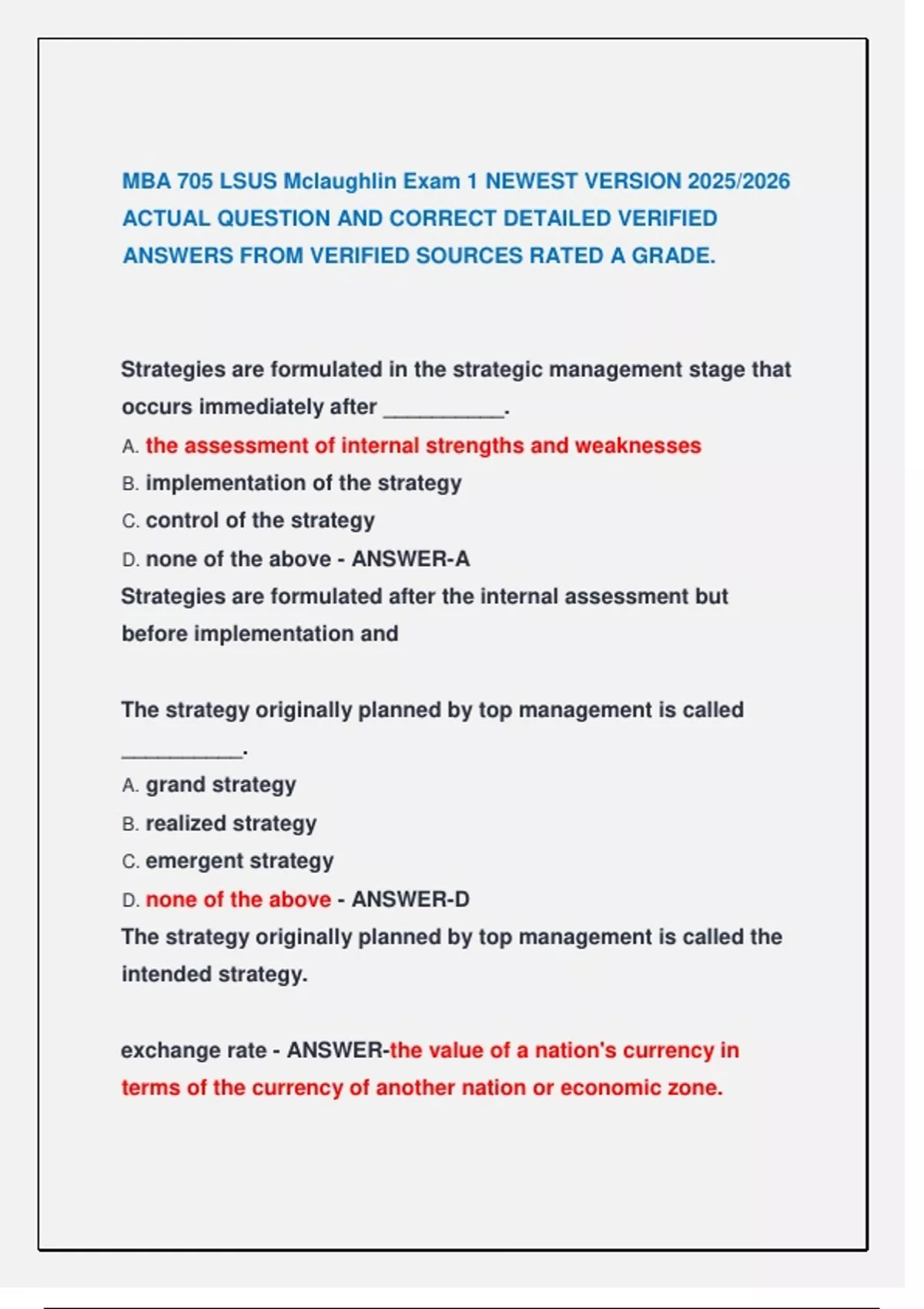 ANSWERS FROM VERIFIED SOURCES RATED A GRADE.