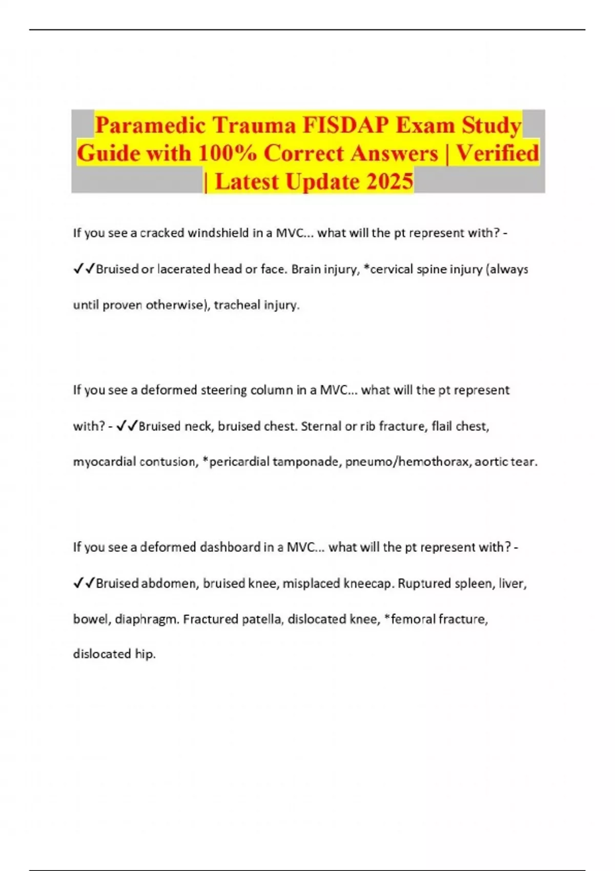 Paramedic Trauma FISDAP Exam Study Guide with 100% Correct Answers | Verified | Latest Update 2025