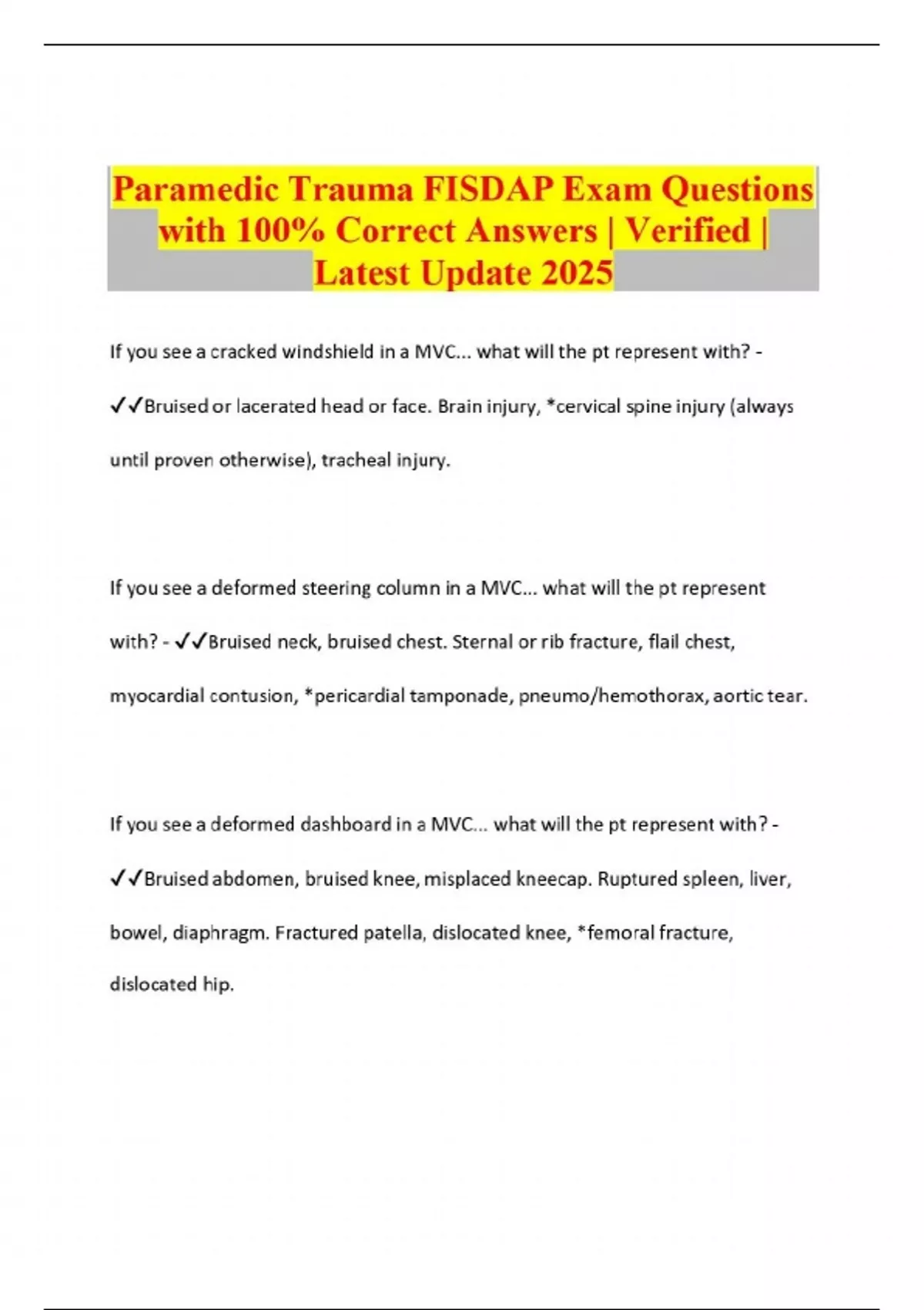 Paramedic Trauma FISDAP Exam Questions with 100% Correct Answers | Verified | Latest Update 2025
