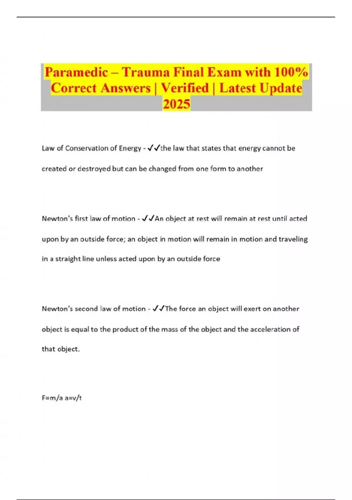 Paramedic – Trauma Final Exam with 100% Correct Answers | Verified | Latest Update 2025