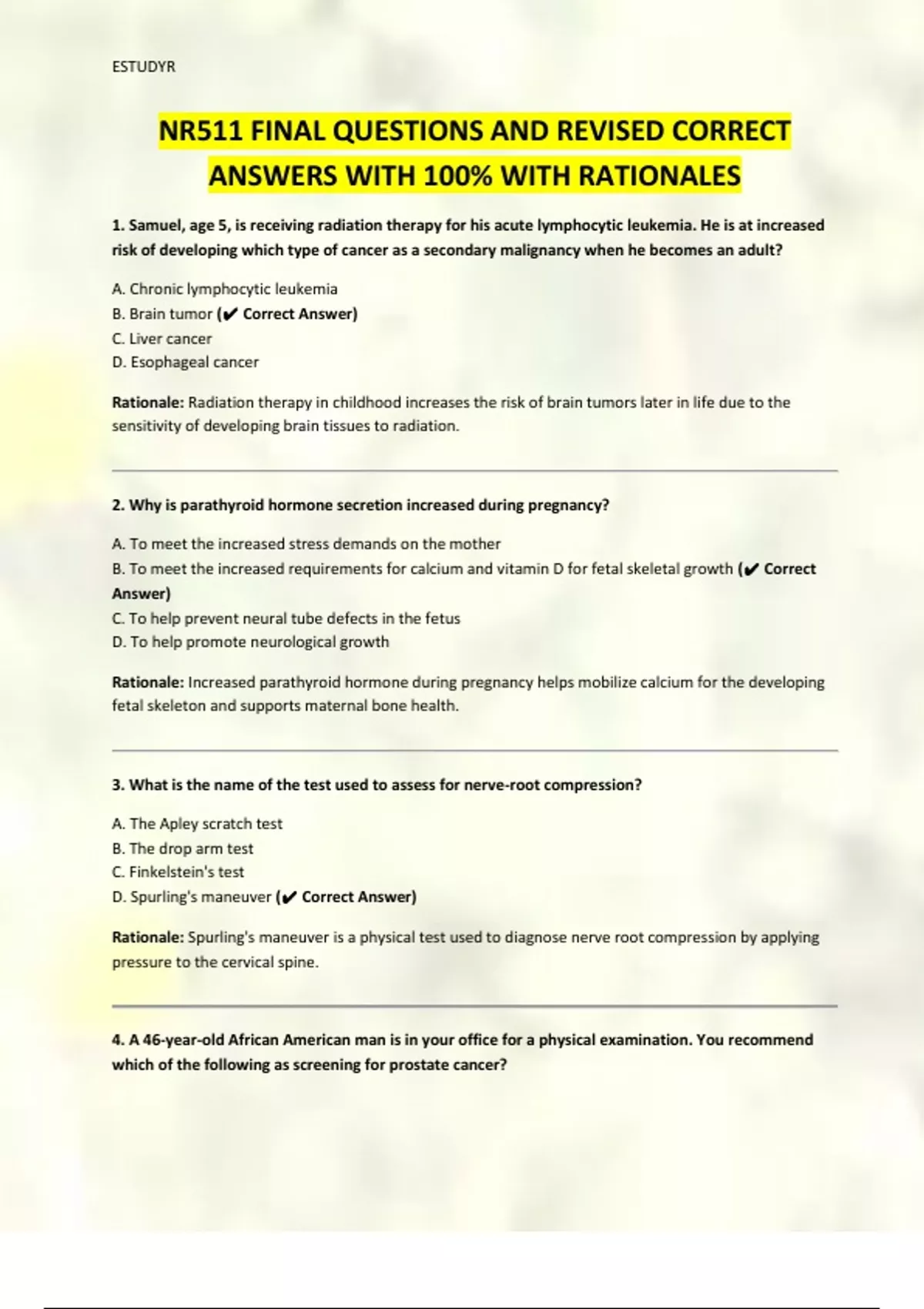 NR511 FINAL QUESTIONS AND REVISED CORRECT