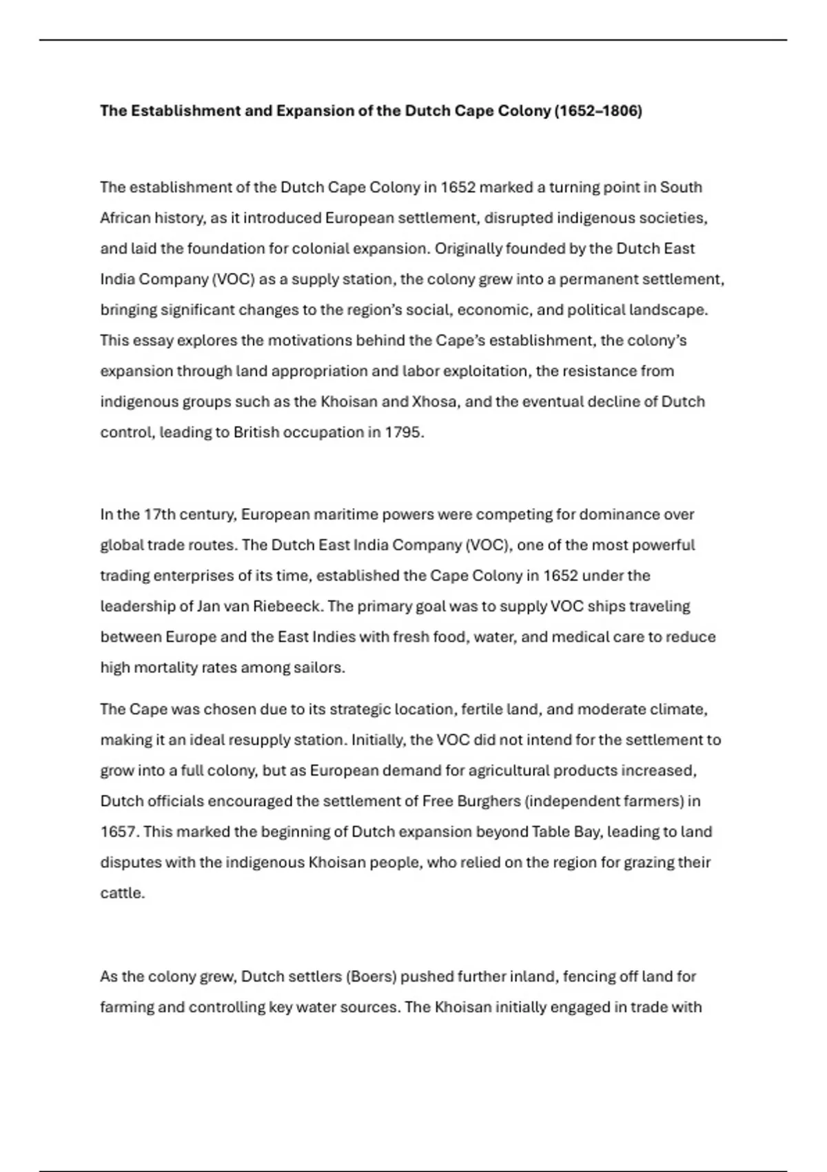 trading enterprises of its time, established the Cape Colony in 1652 under the