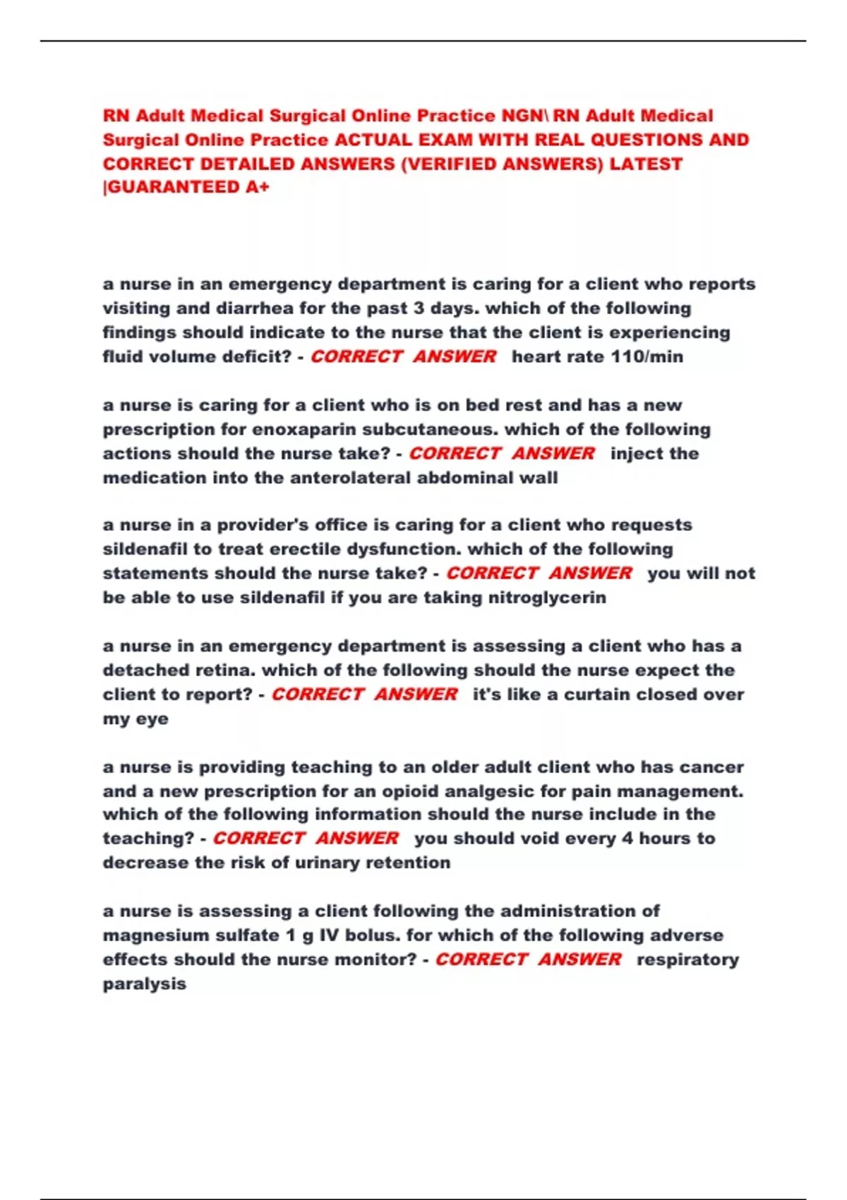 Surgical Online Practice ACTUAL EXAM WITH REAL QUESTIONS AND