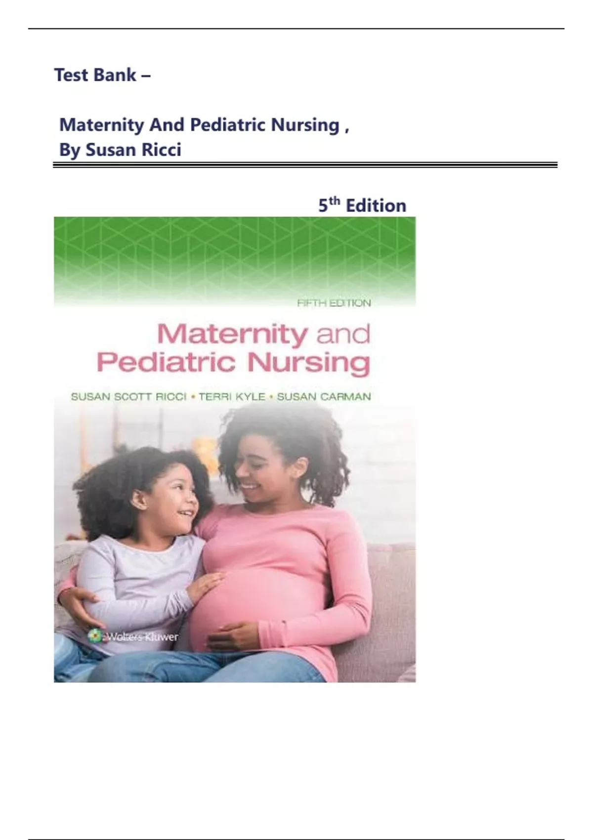 Test Bank - Maternity and Pediatric Nursing , by Susan Ricci, 5th Edition All Chapters | Ultimate Guide