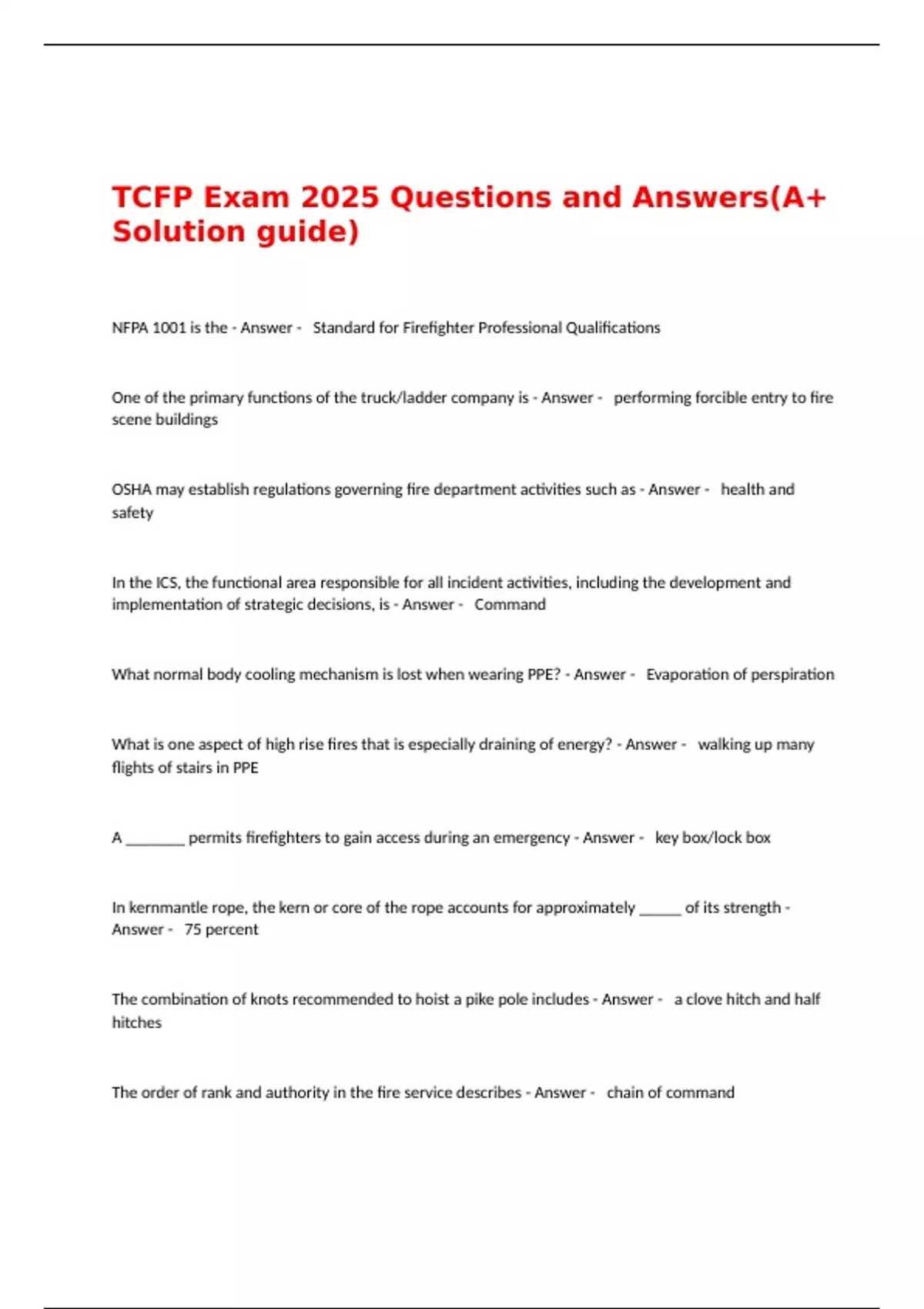 TCFP Exam 2025 Questions and Answers(A+