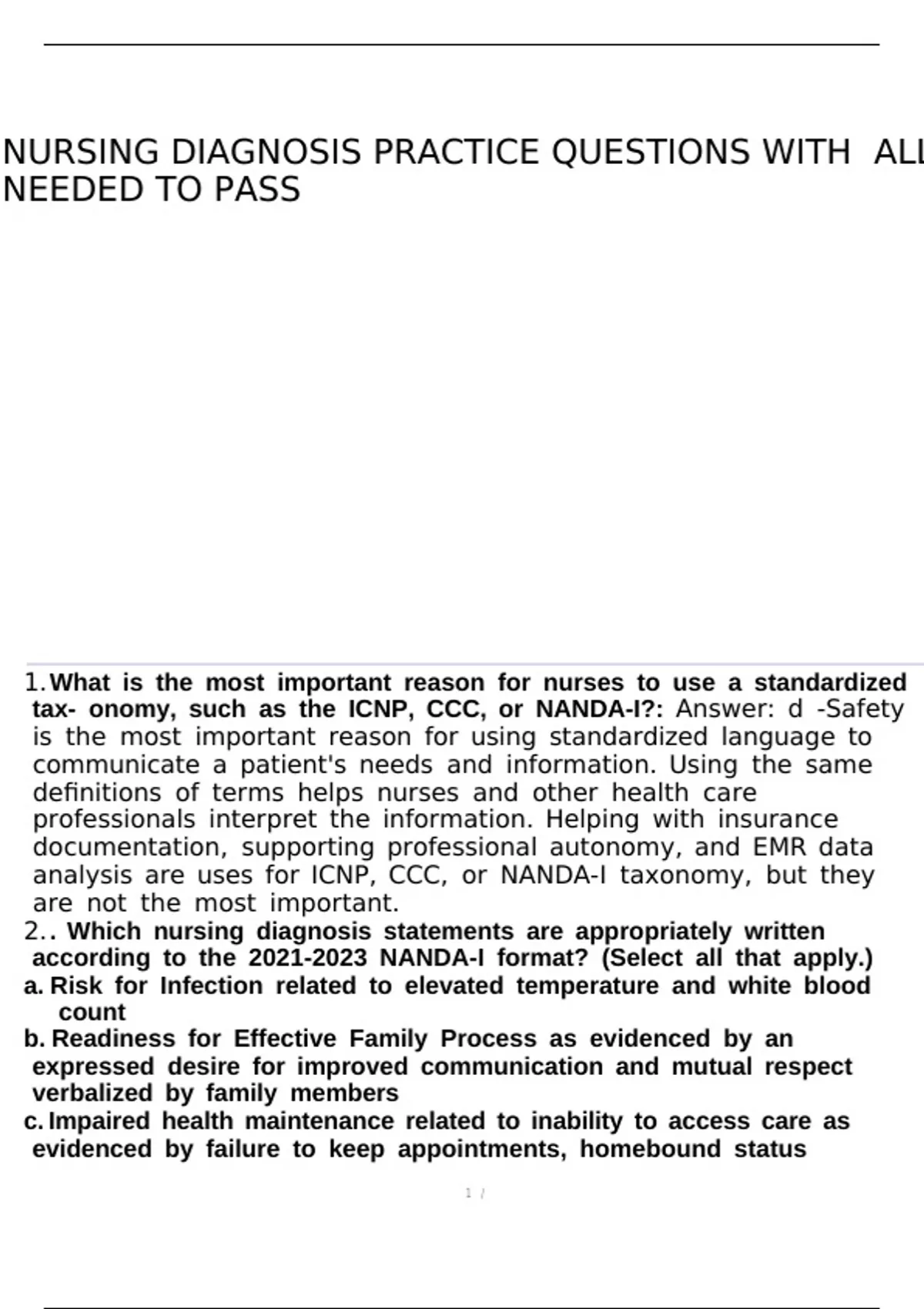 NURSING DIAGNOSIS PRACTICE QUESTIONS WITH ALL