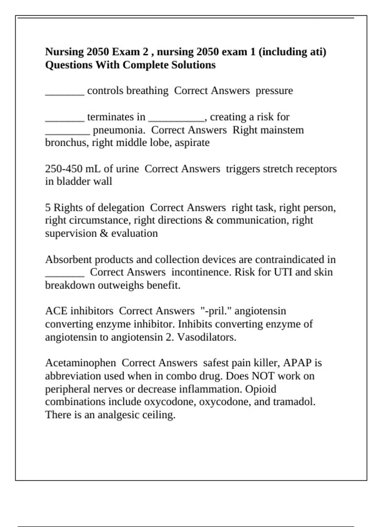 Nursing 2050 Exam 2 , nursing 2050 exam 1 (including ati) Questions With Complete Solutions