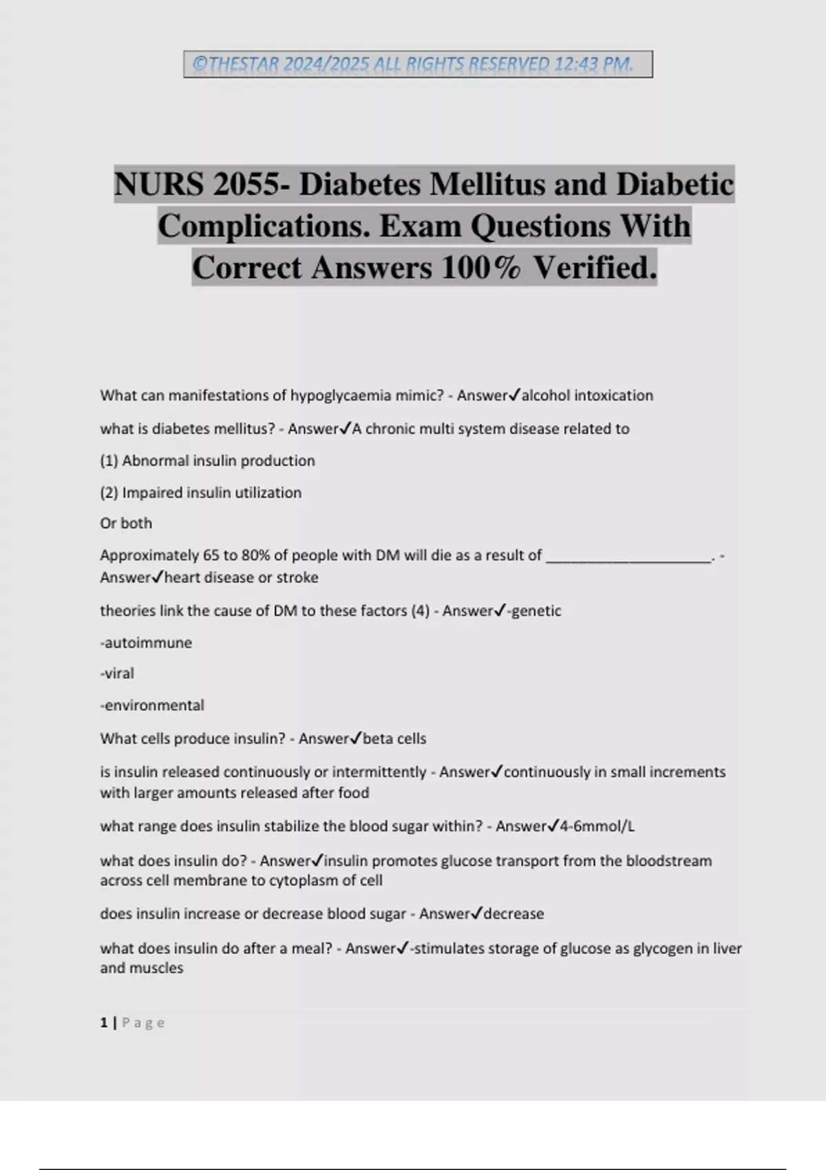 NURS 2055- Diabetes Mellitus and Diabetic