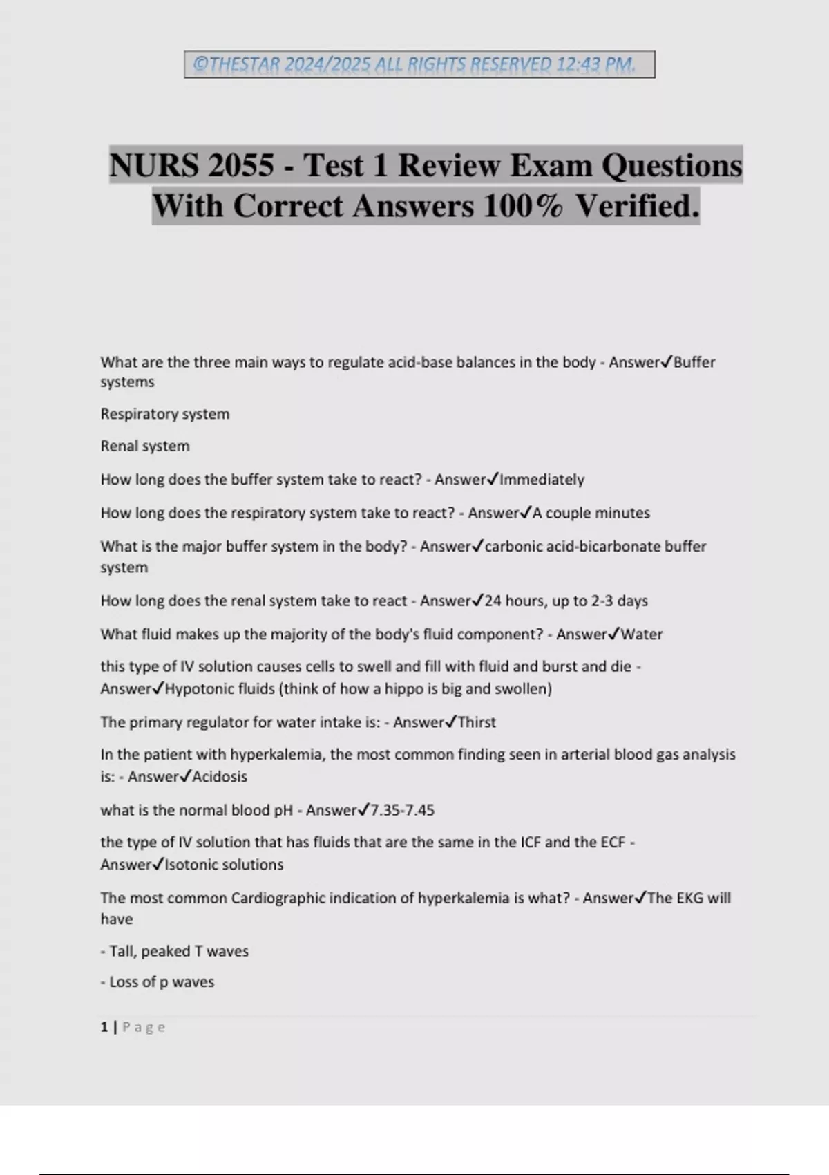 NURS 2055 - Test 1 Review Exam Questions