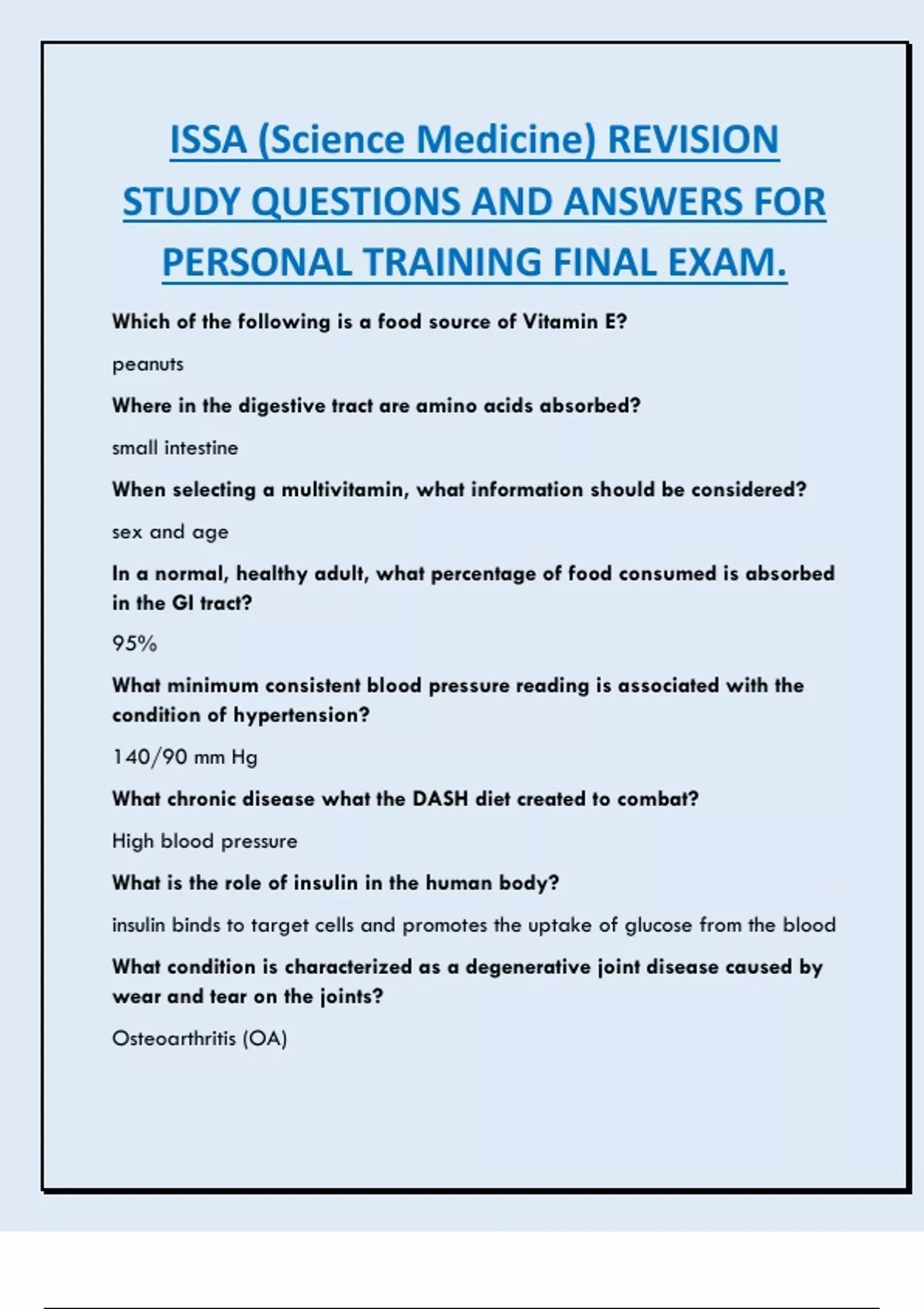 STUDY QUESTIONS AND ANSWERS FOR