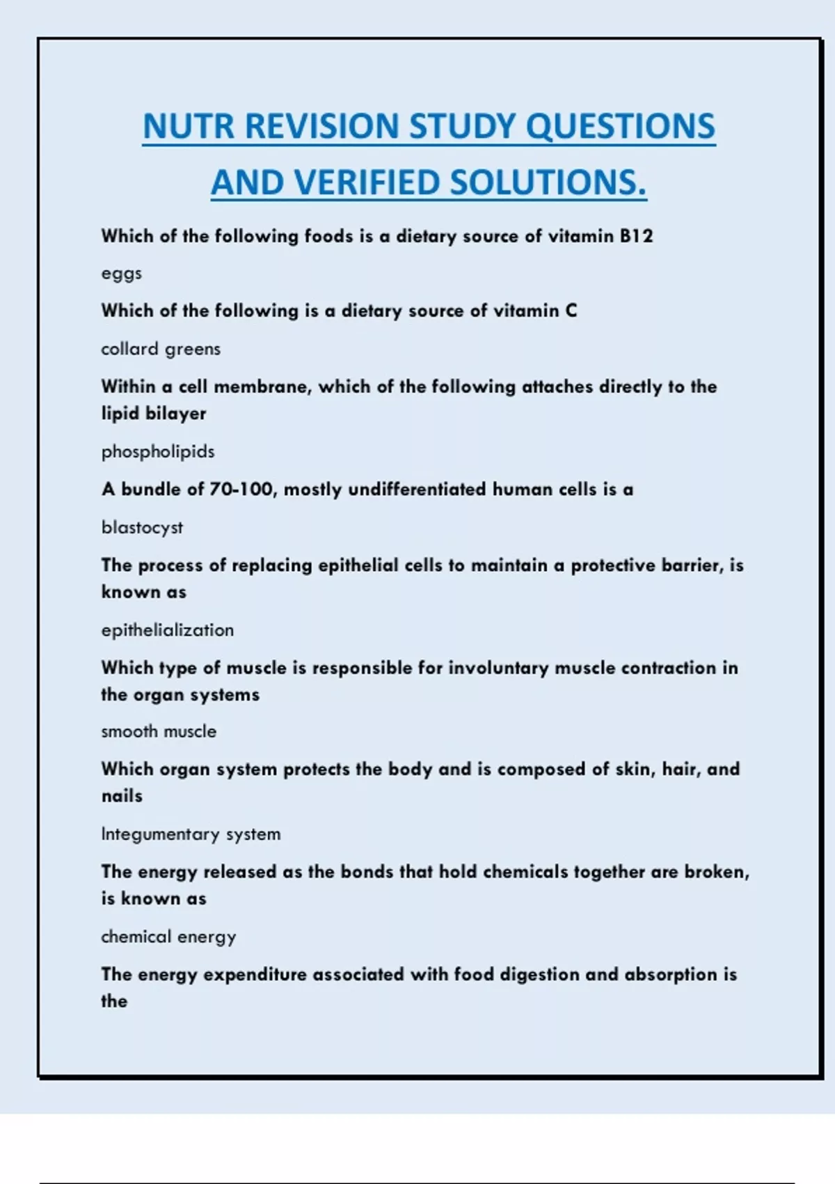 NUTR REVISION STUDY QUESTIONS AND VERIFIED SOLUTION