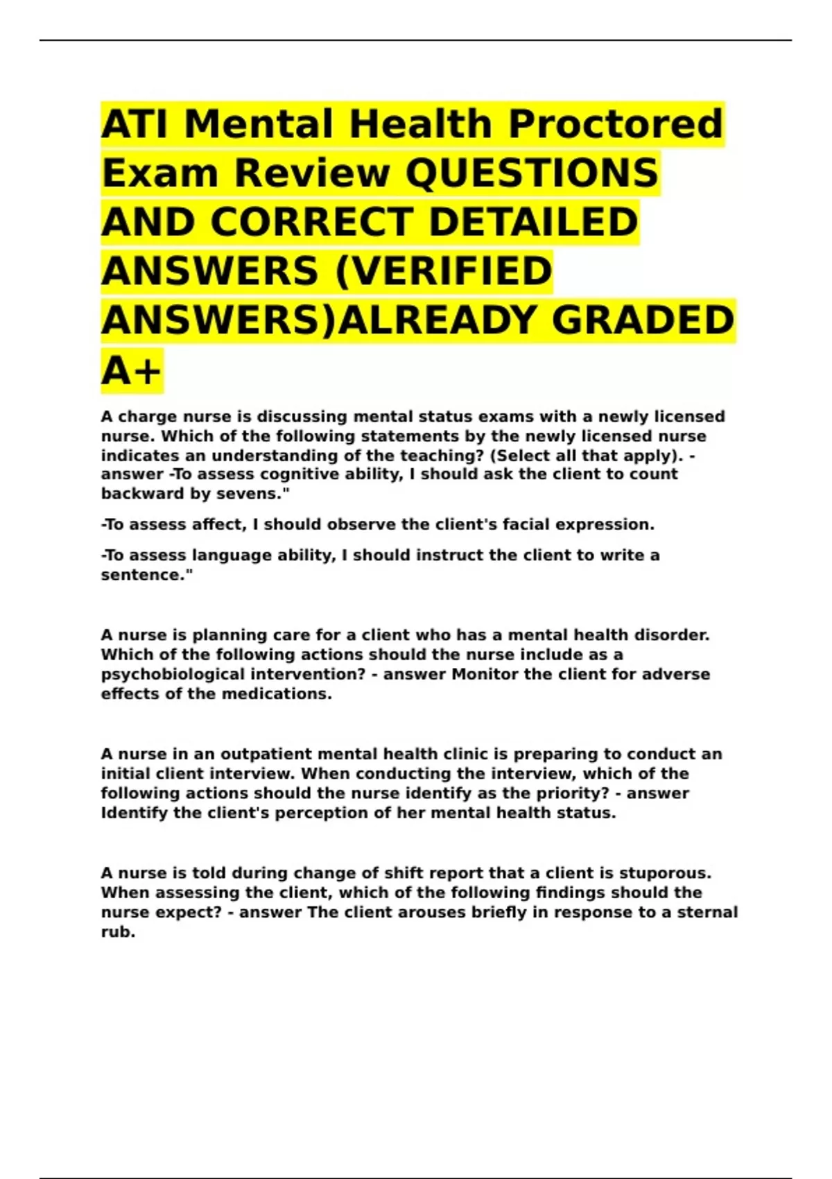 ATI Mental Health Proctored