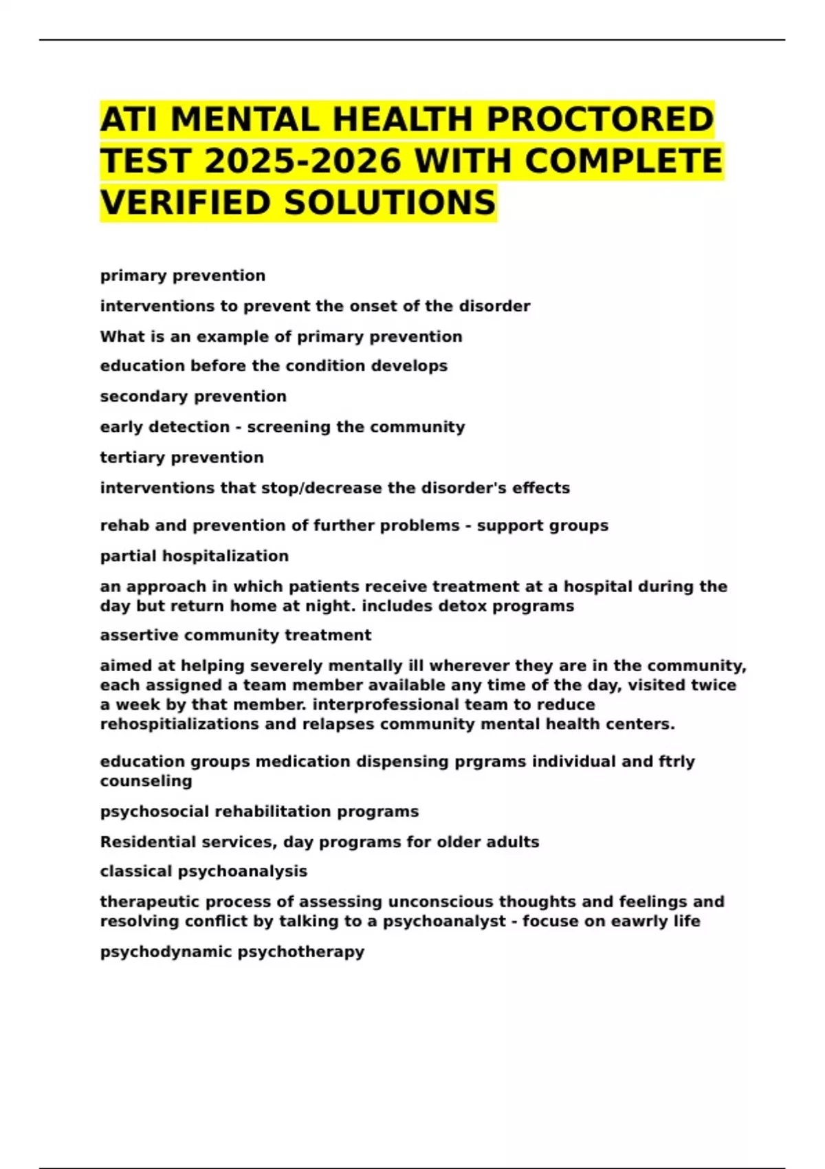 ATI MENTAL HEALTH PROCTORED TEST WITH COMPLETE VERIFIED SOLUTIONS